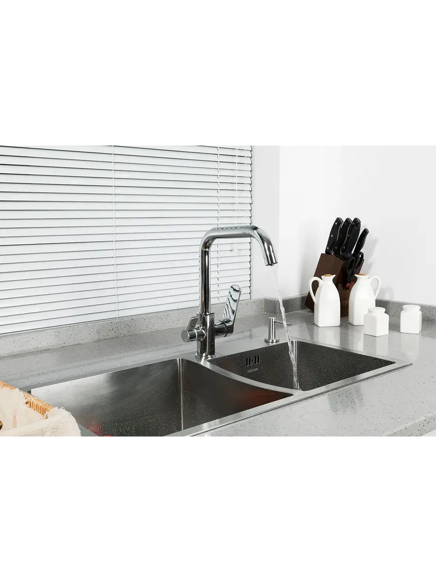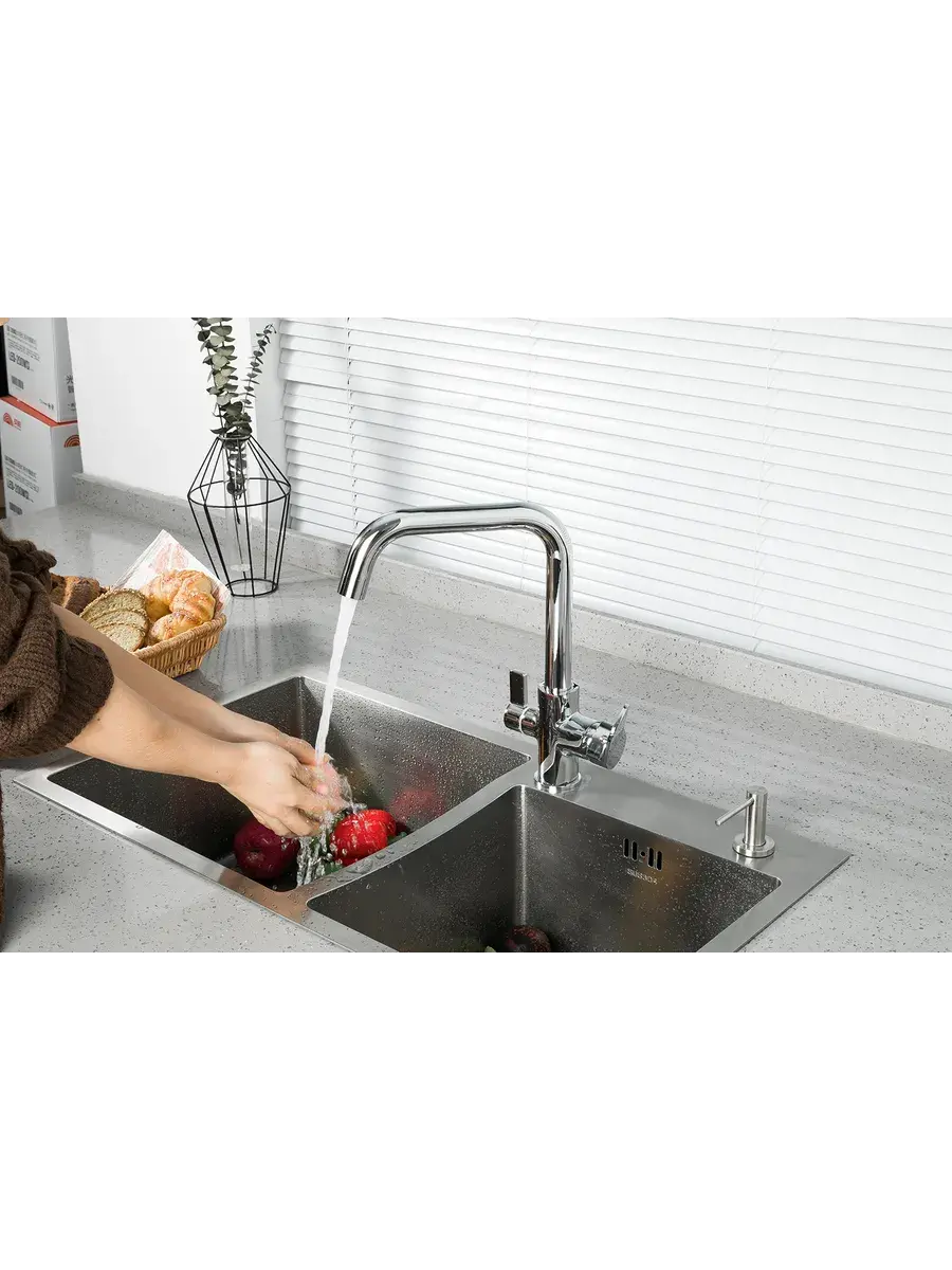 Смеситель для кухни с фильтром под питьевую воду FRAP F4361 - это идеальное решение для современного кухонного интерьера. Модель оснащена поворотным изливом с аэратором, что обеспечивает комфортное использование и экономию воды. Благодаря керамическому картриджу запорный механизм отличается плавностью хода и долговечностью. В комплект входит удобный душевой гарнитур, а также фильтр для питьевой воды, что делает этот смеситель еще более функциональным. FRAP F4361 - это сочетание стиля, качества и практичности, которое станет украшением вашей кухни.