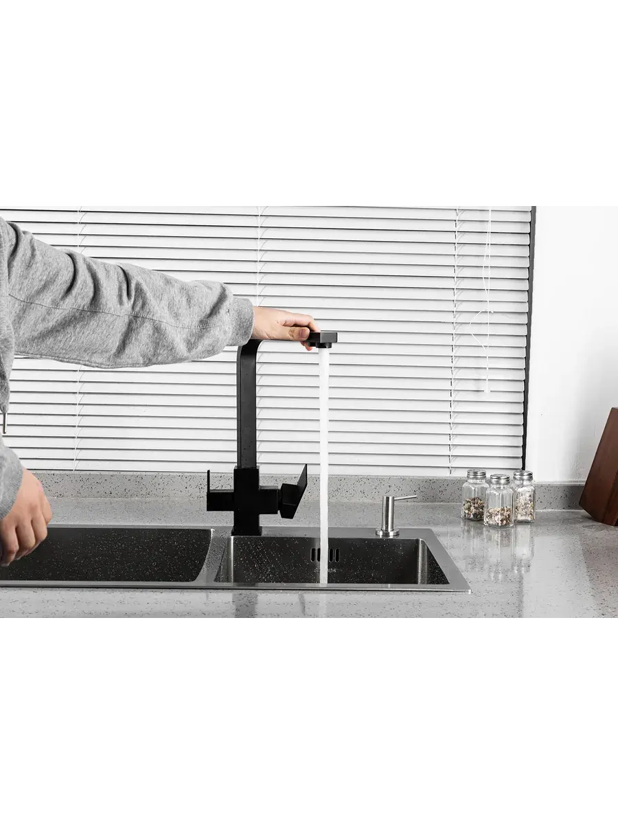 Смеситель для кухни FRAP F43802-6 - это идеальное решение для современного кухонного интерьера. Модель оснащена поворотным изливом с аэратором, что обеспечивает комфортное использование и экономию воды. Благодаря керамическому картриджу запорный механизм отличается плавностью хода и долговечностью. В комплект входит удобный душевой гарнитур, а также фильтр для питьевой воды, что делает этот смеситель еще более функциональным. FRAP F43802-6 - это сочетание стиля, качества и практичности, которое станет украшением вашей кухни.