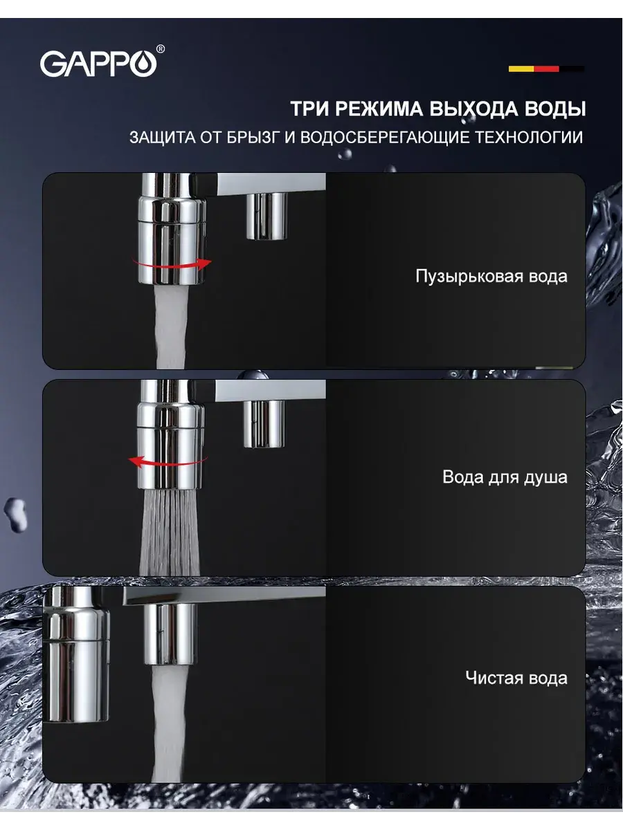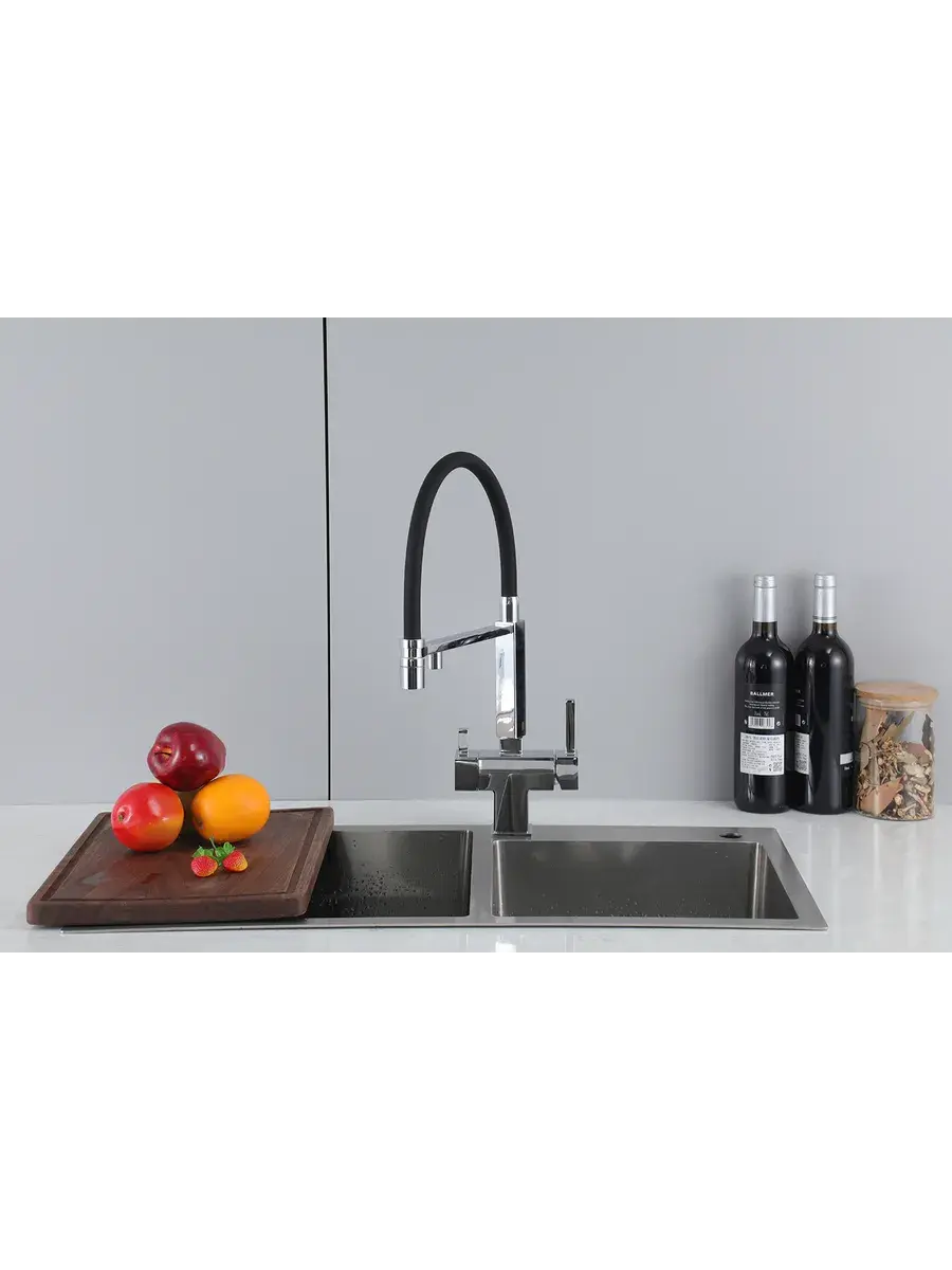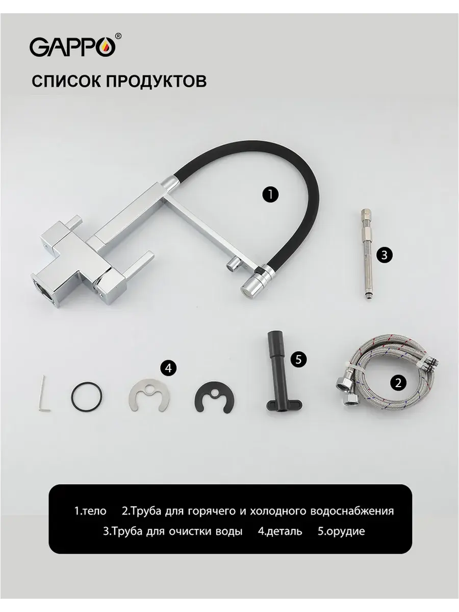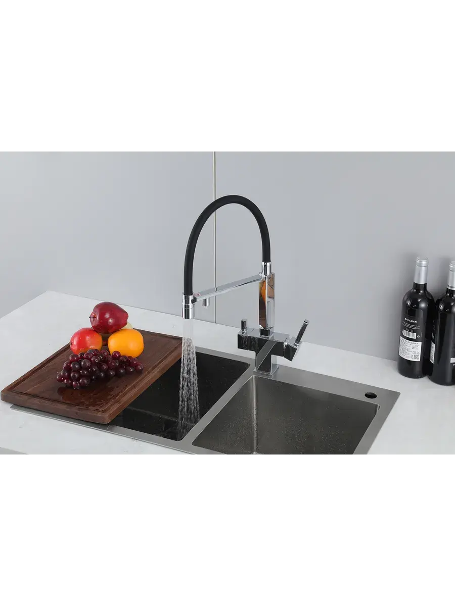 Смеситель для кухни с гибким изливом и подключением к фильтру Gappo G4395-50 в цвете хром – стильное и функциональное решение для вашей кухни. Модель оснащена гибким поворотным изливом высотой 48 см и длиной 23 см, что обеспечивает удобство использования при мытье посуды и заполнении емкостей. Встроенный фильтр и аэратор гарантируют чистую воду и экономию ее расхода. Двухрычажный механизм управления позволяет легко регулировать температуру и напор воды. Смеситель выполнен из латуни и силикона, что обеспечивает его прочность и долговечность.
