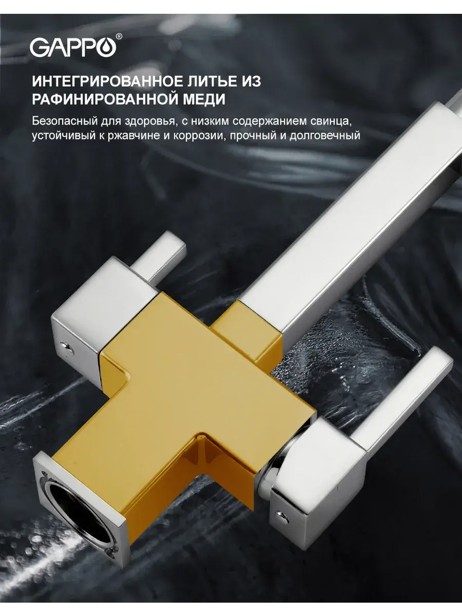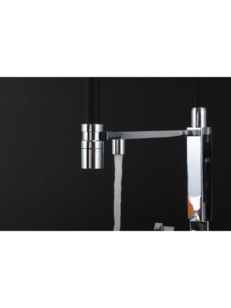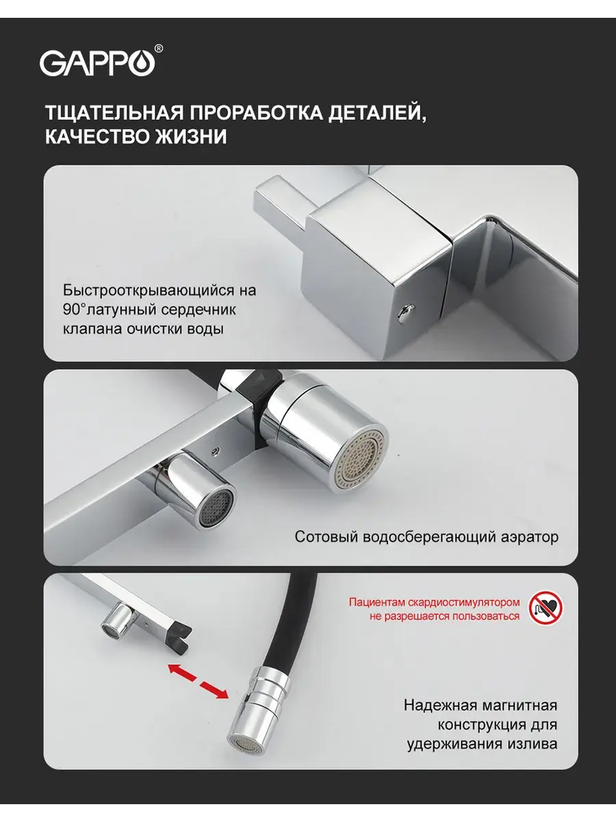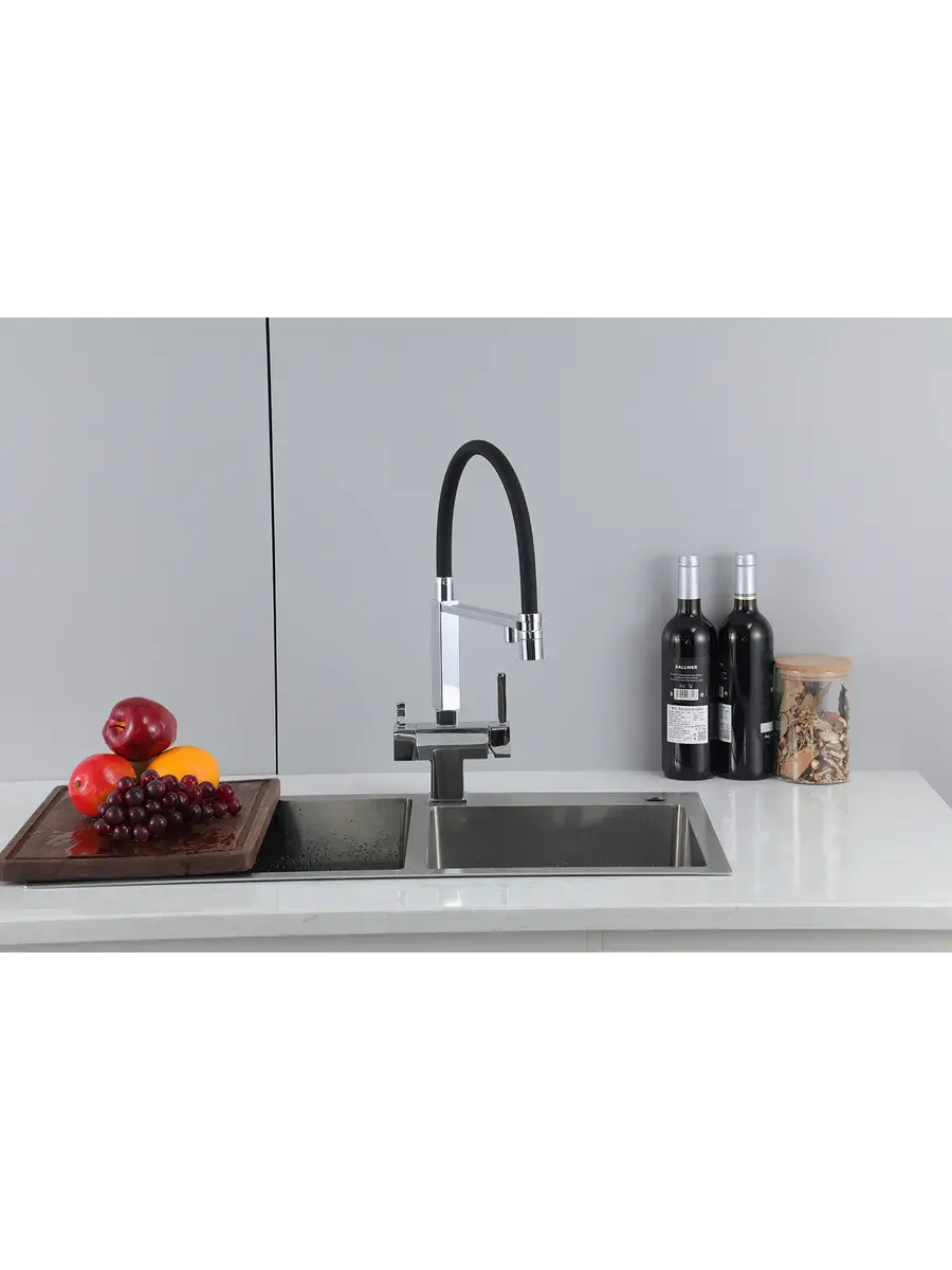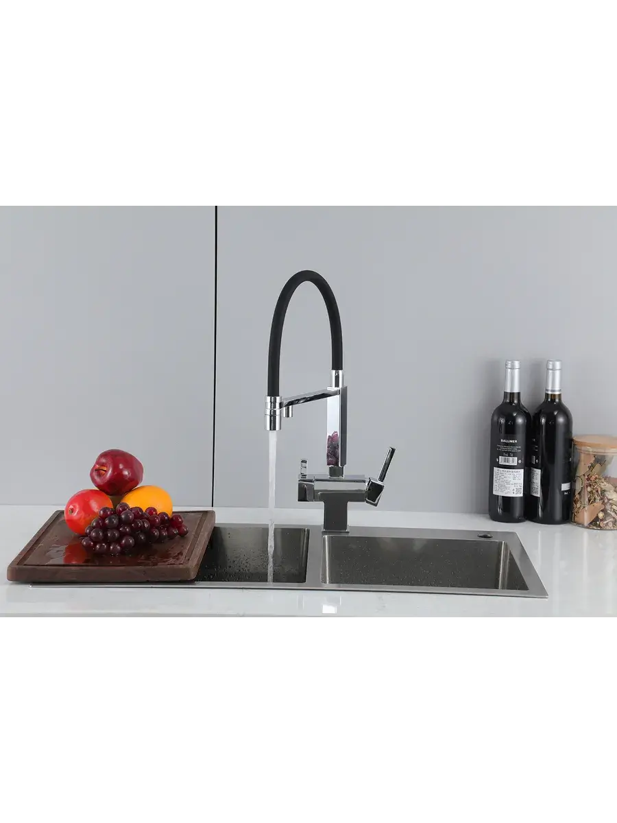 Смеситель для кухни с гибким изливом и подключением к фильтру Gappo G4395-50 в цвете хром – стильное и функциональное решение для вашей кухни. Модель оснащена гибким поворотным изливом высотой 48 см и длиной 23 см, что обеспечивает удобство использования при мытье посуды и заполнении емкостей. Встроенный фильтр и аэратор гарантируют чистую воду и экономию ее расхода. Двухрычажный механизм управления позволяет легко регулировать температуру и напор воды. Смеситель выполнен из латуни и силикона, что обеспечивает его прочность и долговечность.