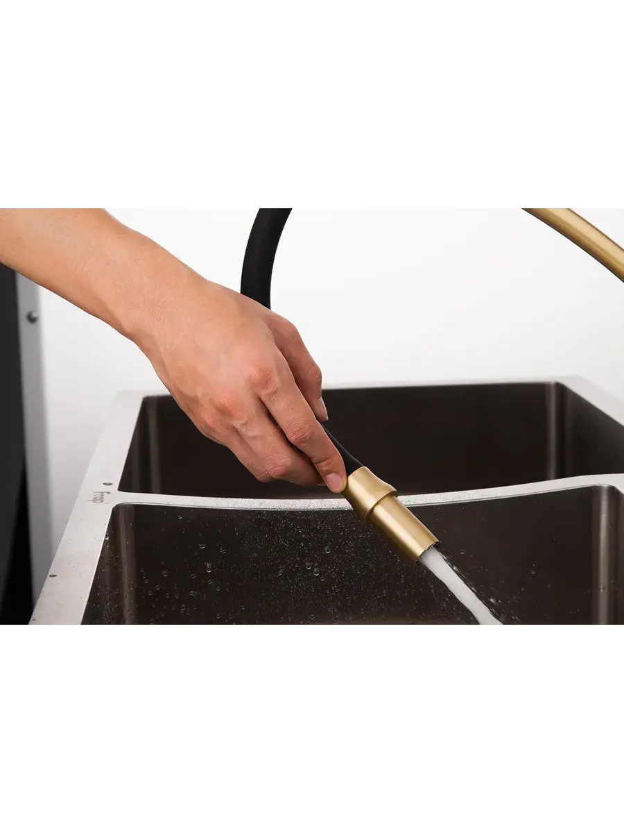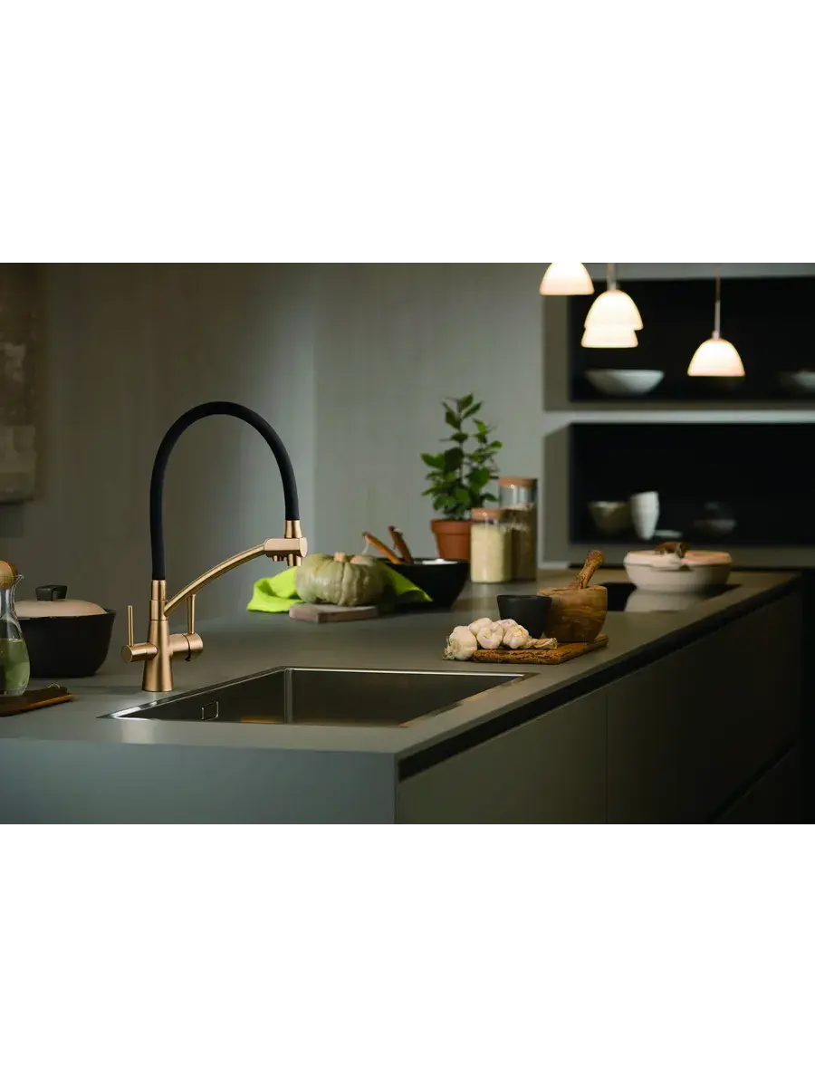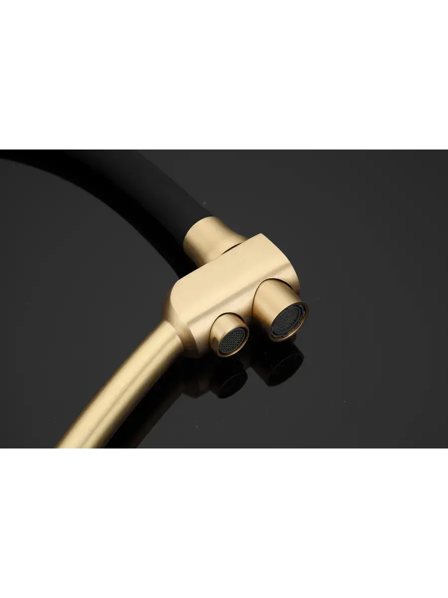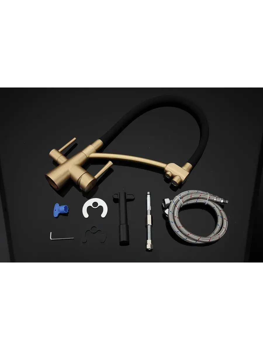 Смеситель для кухни с гибким изливом и подключением к фильтру Gappo G4398 в цвете сатин – стильное и функциональное решение для вашей кухни. Модель оснащена гибким поворотным изливом высотой 43 см и длиной 23 см, что обеспечивает удобство использования при мытье посуды и заполнении емкостей. Встроенный фильтр и аэратор гарантируют чистую воду и экономию ее расхода. Двухрычажный механизм управления позволяет легко регулировать температуру и напор воды. Смеситель выполнен из латуни и силикона, что обеспечивает его прочность и долговечность.