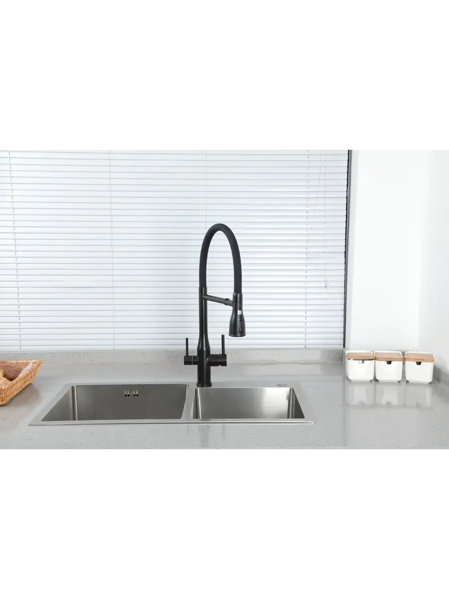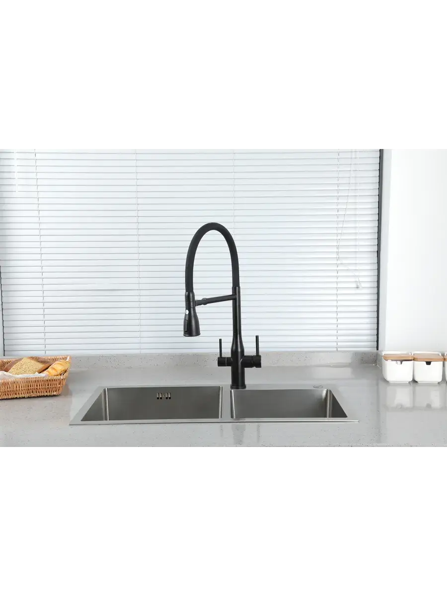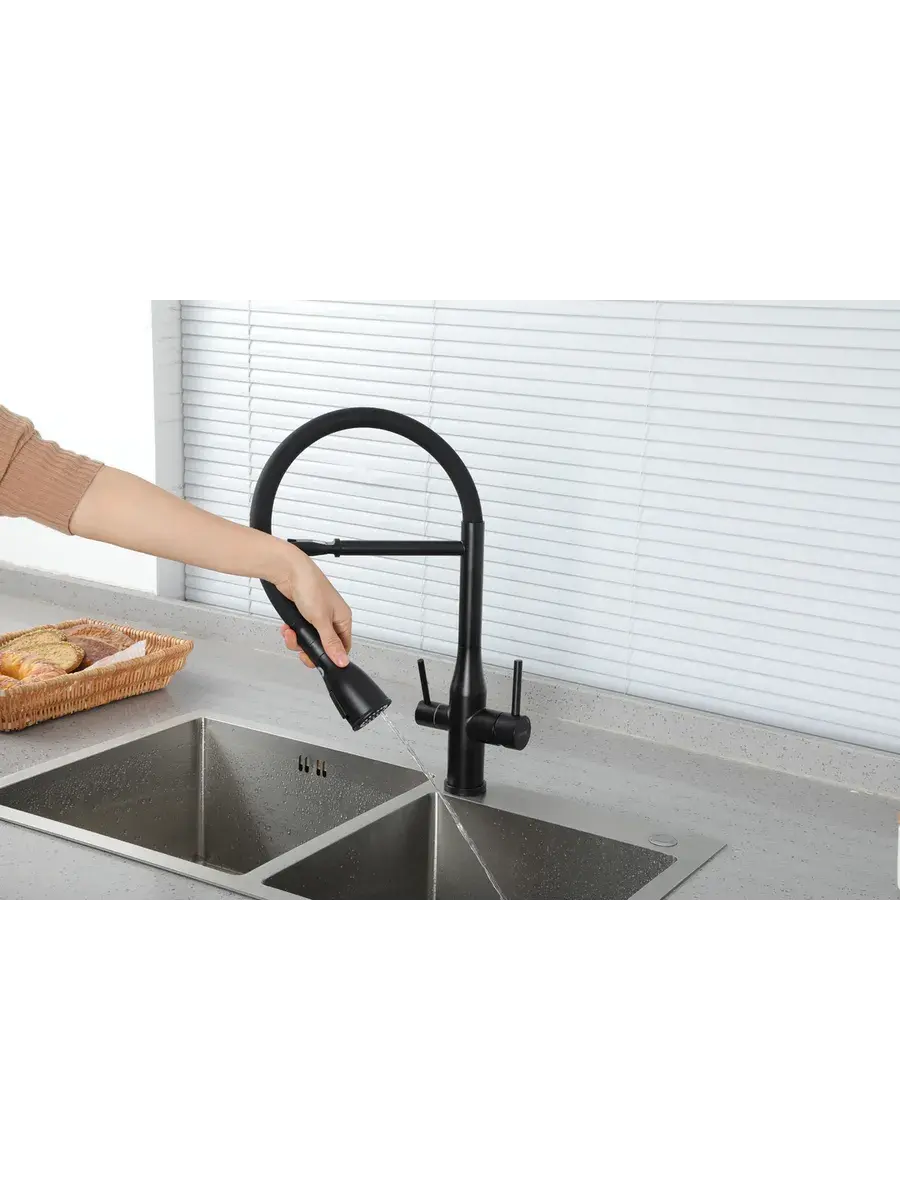 Смеситель для кухни с гибким изливом и подключением к фильтру Gappo G4399-76 в сатиновом цвете – стильное и функциональное решение для вашей кухни. Модель оснащена гибким поворотным изливом высотой 53 см и длиной 27 см, что обеспечивает удобство использования при мытье посуды и заполнении емкостей. Встроенный фильтр и аэратор гарантируют чистую воду и экономию ее расхода. Двухрычажный механизм управления позволяет легко регулировать температуру и напор воды. Смеситель выполнен из латуни и силикона, что обеспечивает его прочность и долговечность.