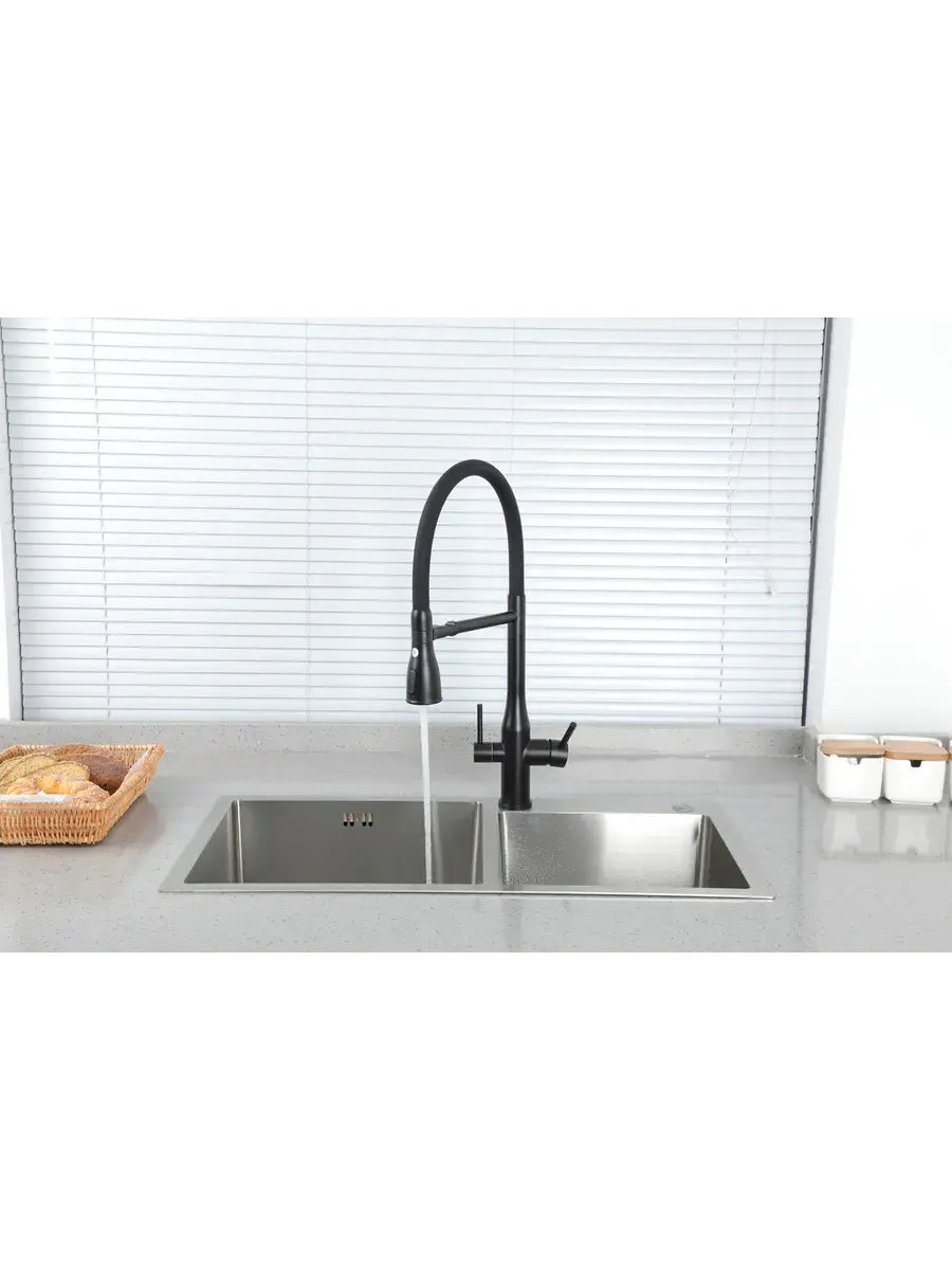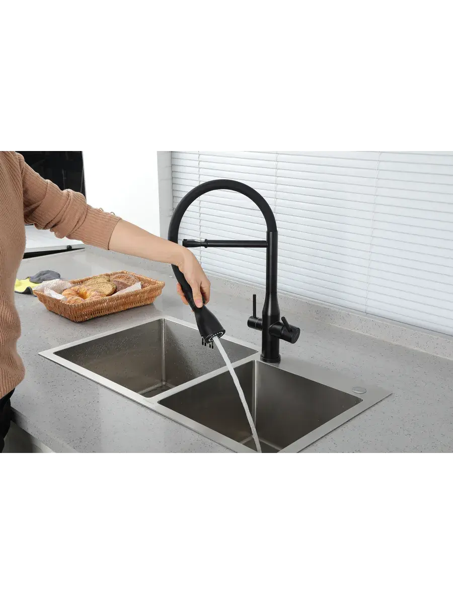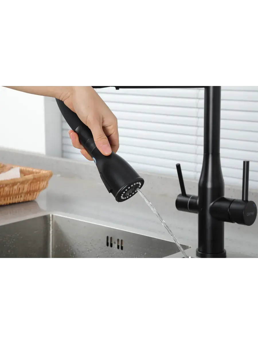 Смеситель для кухни с гибким изливом и подключением к фильтру Gappo G4399-76 в сатиновом цвете – стильное и функциональное решение для вашей кухни. Модель оснащена гибким поворотным изливом высотой 53 см и длиной 27 см, что обеспечивает удобство использования при мытье посуды и заполнении емкостей. Встроенный фильтр и аэратор гарантируют чистую воду и экономию ее расхода. Двухрычажный механизм управления позволяет легко регулировать температуру и напор воды. Смеситель выполнен из латуни и силикона, что обеспечивает его прочность и долговечность.