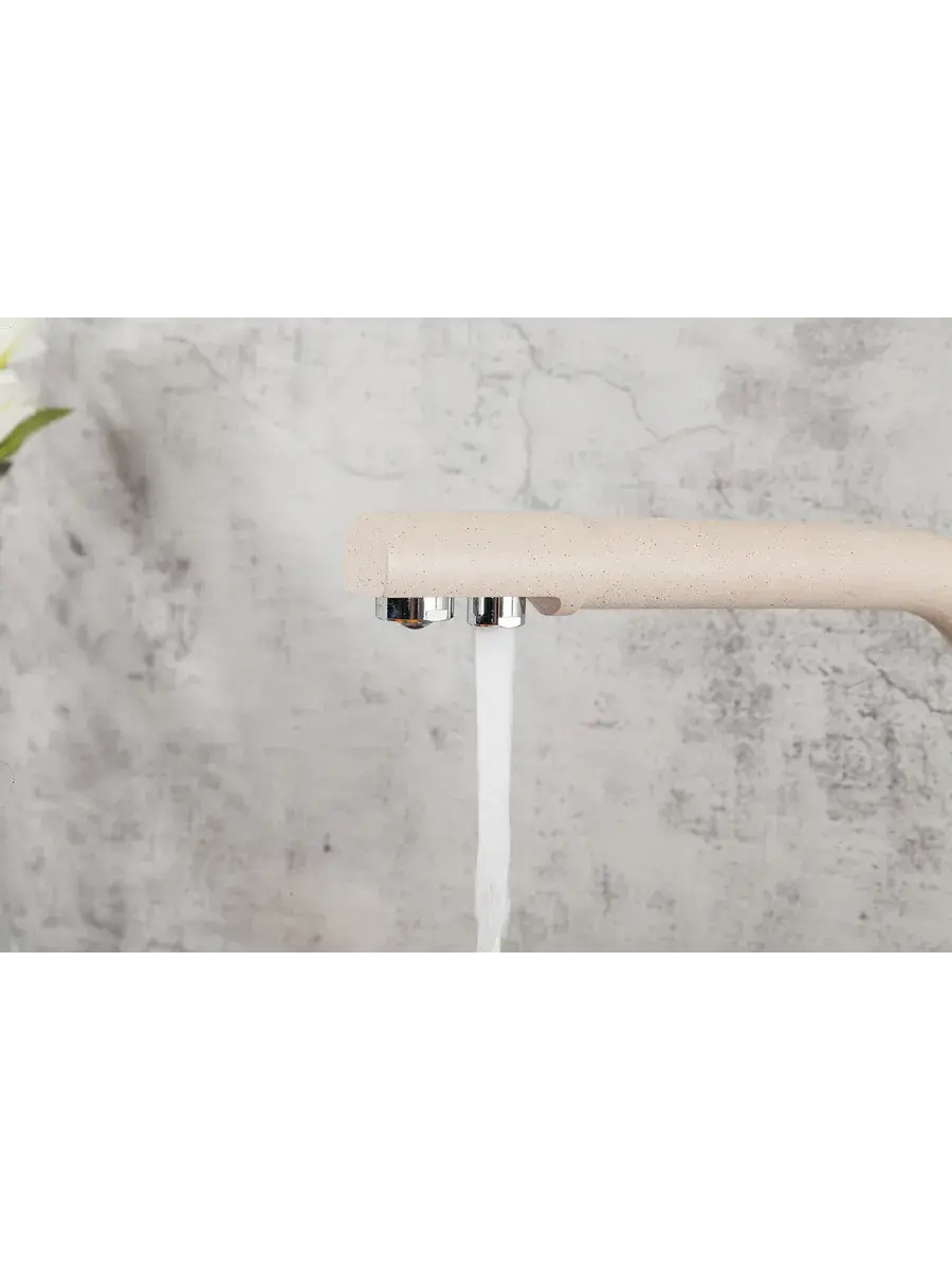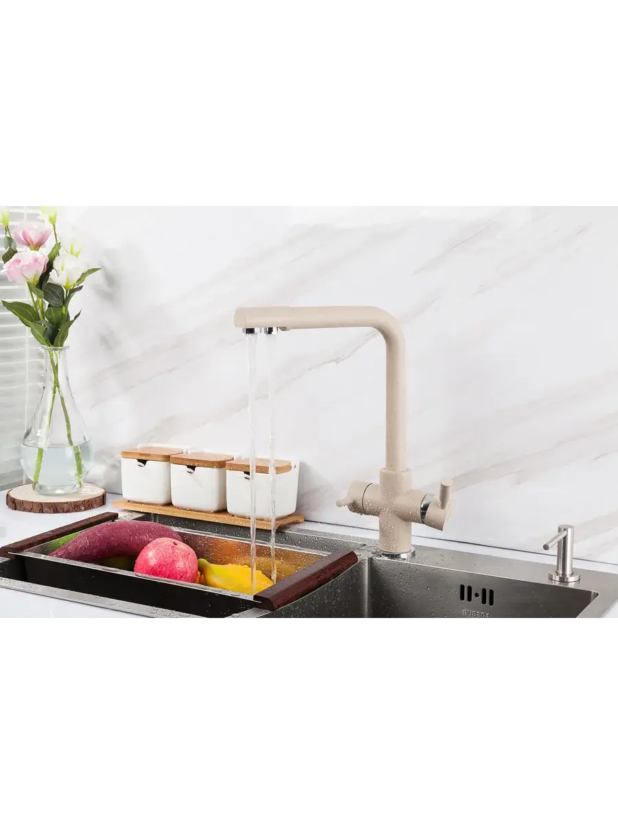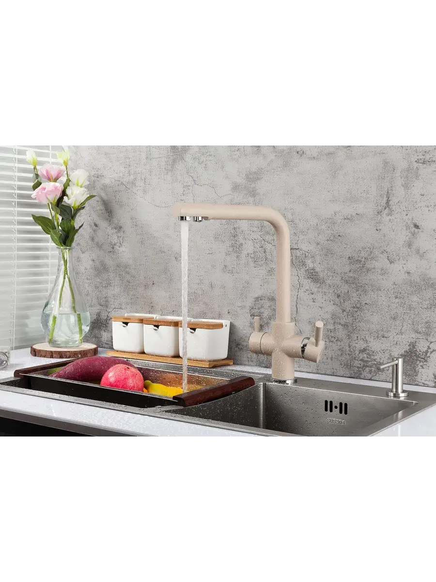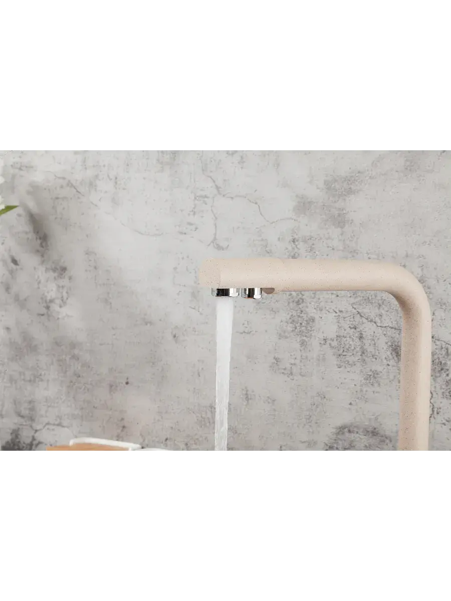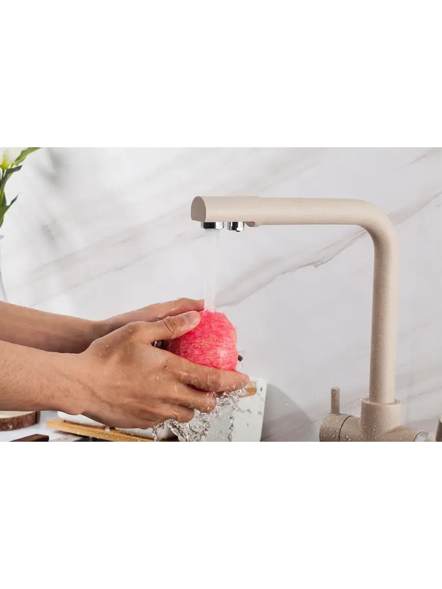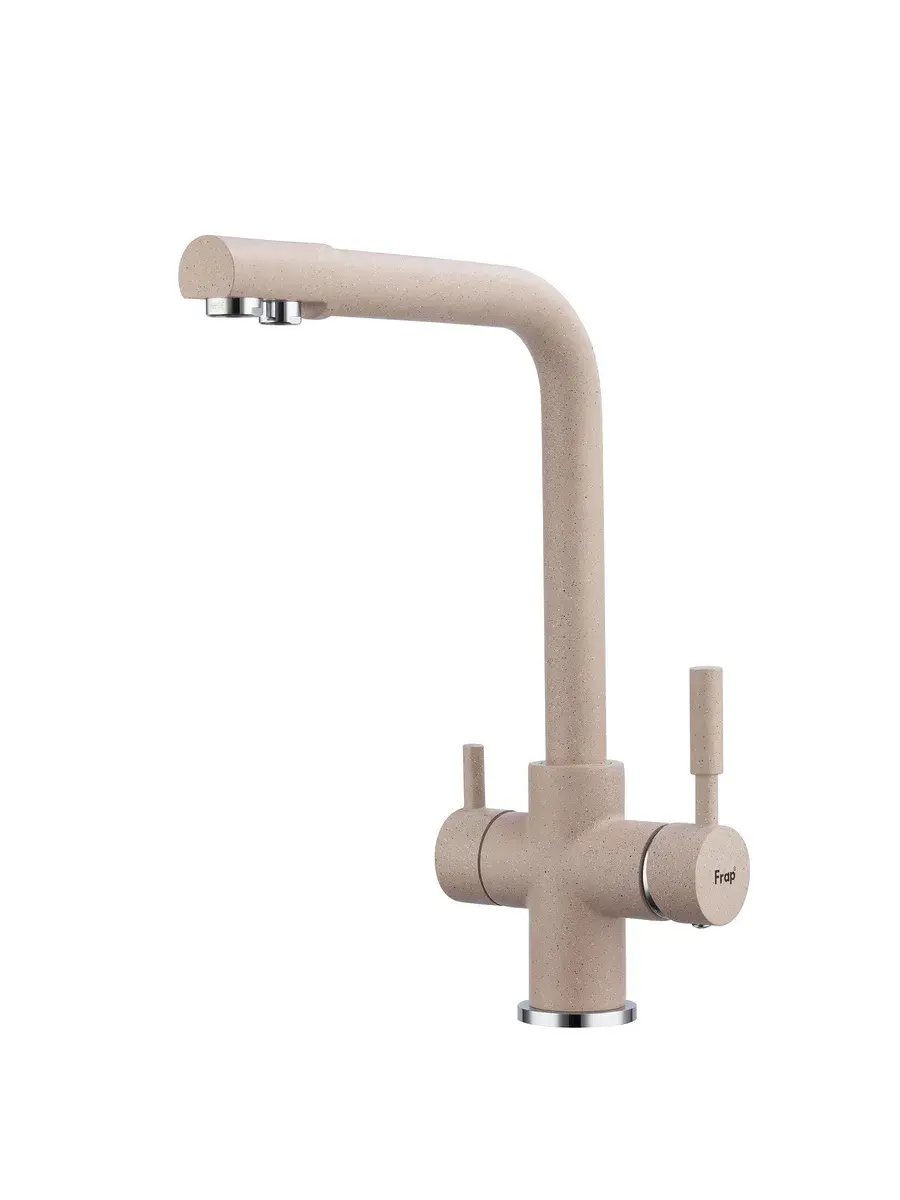Если вы задумали ремонт на кухне, советуем обратить внимание на наш новый кухонный смеситель F4352-23 в светло-бежевом цвете . Он разработан немецким брендом по новейшей технологии. Наш магазин - официальный дилер FRAP в России. Мы поставляем только оригинальную продукцию и даем 3 года гарантии на изделия. Frap представляет новый смеситель для кухни с фильтром, который станет незаменимой частью на вашей кухни. Этот смеситель сделан из латуни высокого качества, что обеспечивает прочность, надежность и долговечность устройства. Оснащен высоким универсальным изливом, который идеально подходит для моек кухонных и позволяет заполнять большие емкости, чтобы ускорить процесс приготовление пищи, облегчить мытье противней, кастрюль. Кроме того, кран оснащен изливом, который легко поворачивается на 360 градусов, что делает его более удобным в использовании. Имеет керамический картридж, что позволяет точно регулировать температуру и напор воды. Аэратор обеспечивает более мягкий и экономный поток воды, что помогает сэкономить воду и снизить счета за электричество. Имеет гибкий тип подводки, что позволяет упростить процесс установки. Он является идеальным выбором для тех, кто ищет качественный, удобный и надежный смеситель для своей кухни. Отлично сочетается с любым дизайном.
