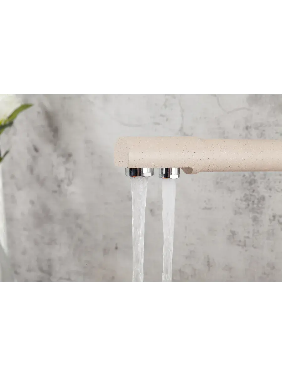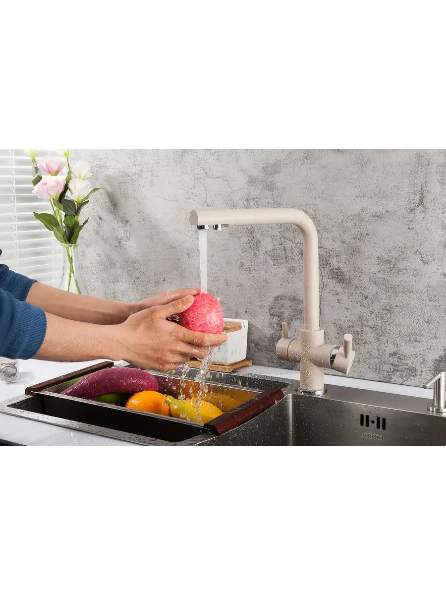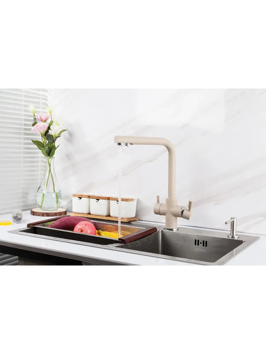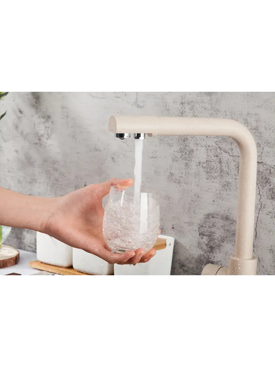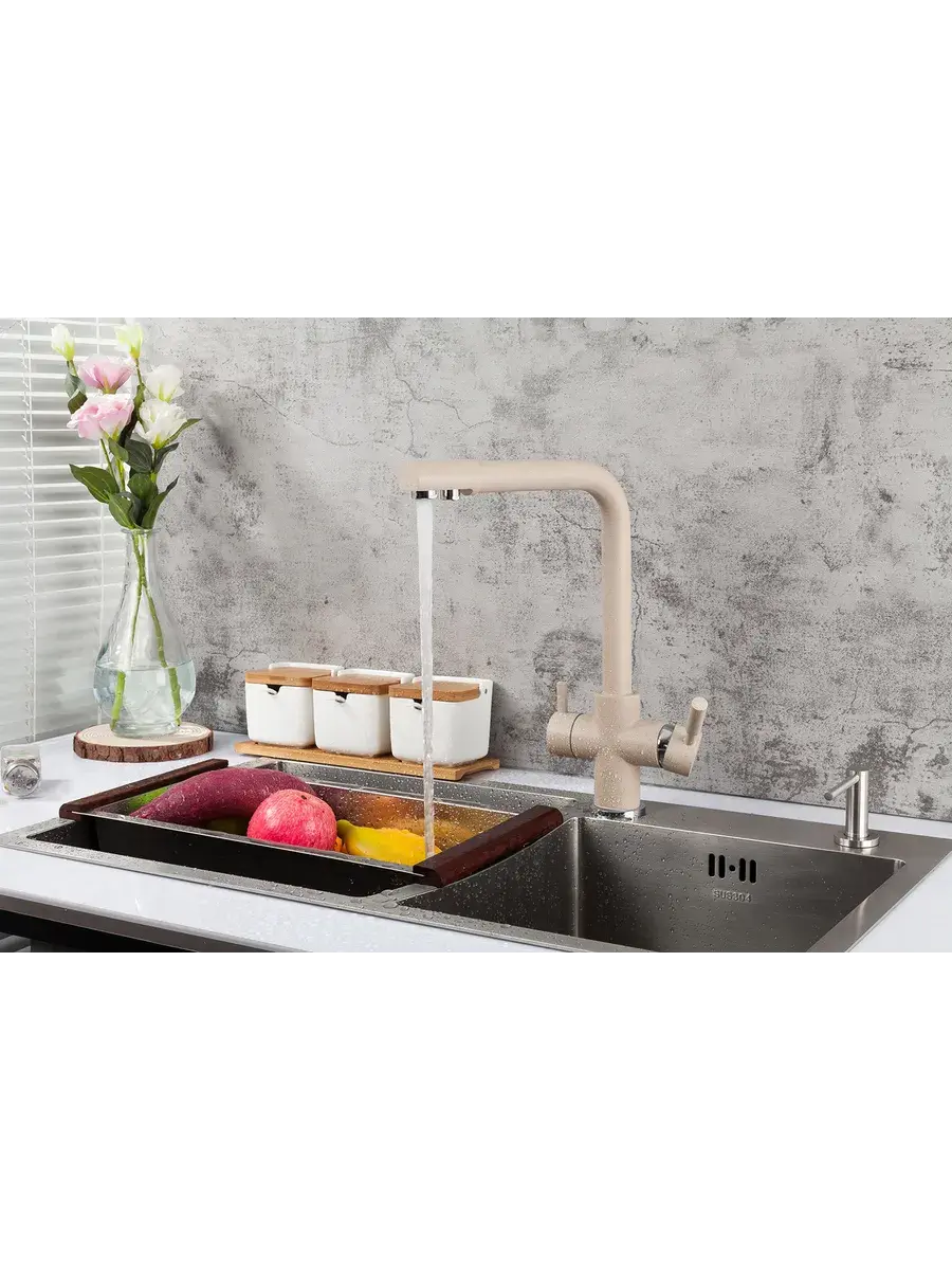 Если вы задумали ремонт на кухне, советуем обратить внимание на наш новый кухонный смеситель F4352-23 в светло-бежевом цвете . Он разработан немецким брендом по новейшей технологии. Наш магазин - официальный дилер FRAP в России. Мы поставляем только оригинальную продукцию и даем 3 года гарантии на изделия. Frap представляет новый смеситель для кухни с фильтром, который станет незаменимой частью на вашей кухни. Этот смеситель сделан из латуни высокого качества, что обеспечивает прочность, надежность и долговечность устройства. Оснащен высоким универсальным изливом, который идеально подходит для моек кухонных и позволяет заполнять большие емкости, чтобы ускорить процесс приготовление пищи, облегчить мытье противней, кастрюль. Кроме того, кран оснащен изливом, который легко поворачивается на 360 градусов, что делает его более удобным в использовании. Имеет керамический картридж, что позволяет точно регулировать температуру и напор воды. Аэратор обеспечивает более мягкий и экономный поток воды, что помогает сэкономить воду и снизить счета за электричество. Имеет гибкий тип подводки, что позволяет упростить процесс установки. Он является идеальным выбором для тех, кто ищет качественный, удобный и надежный смеситель для своей кухни. Отлично сочетается с любым дизайном.