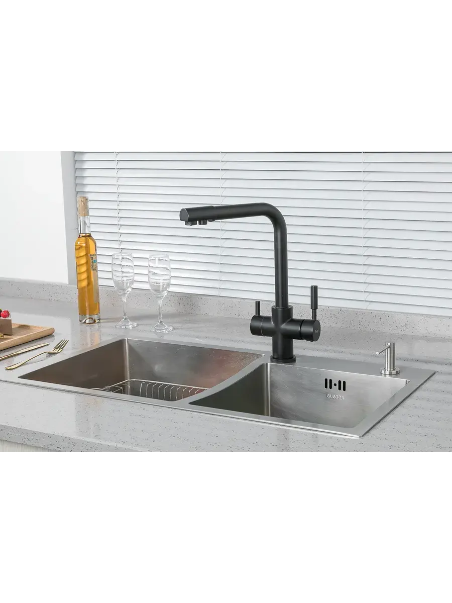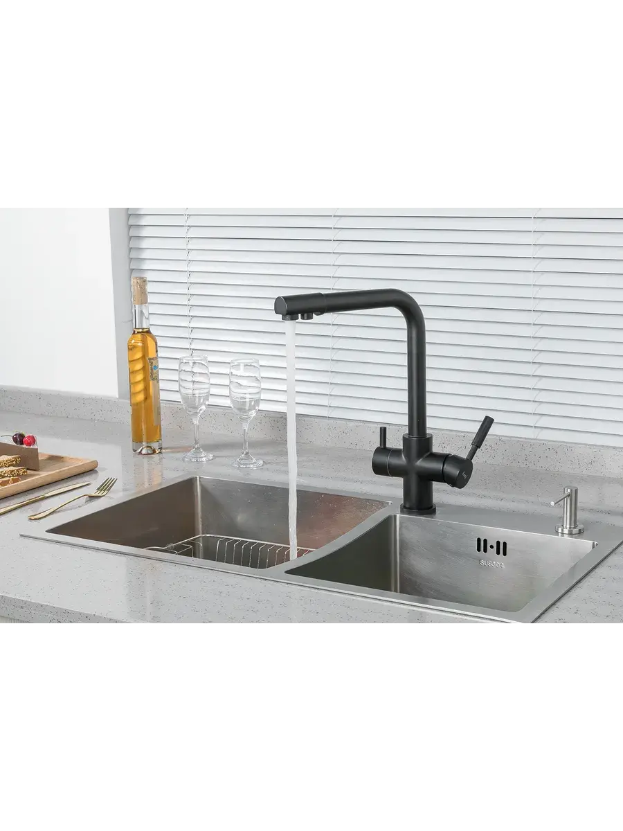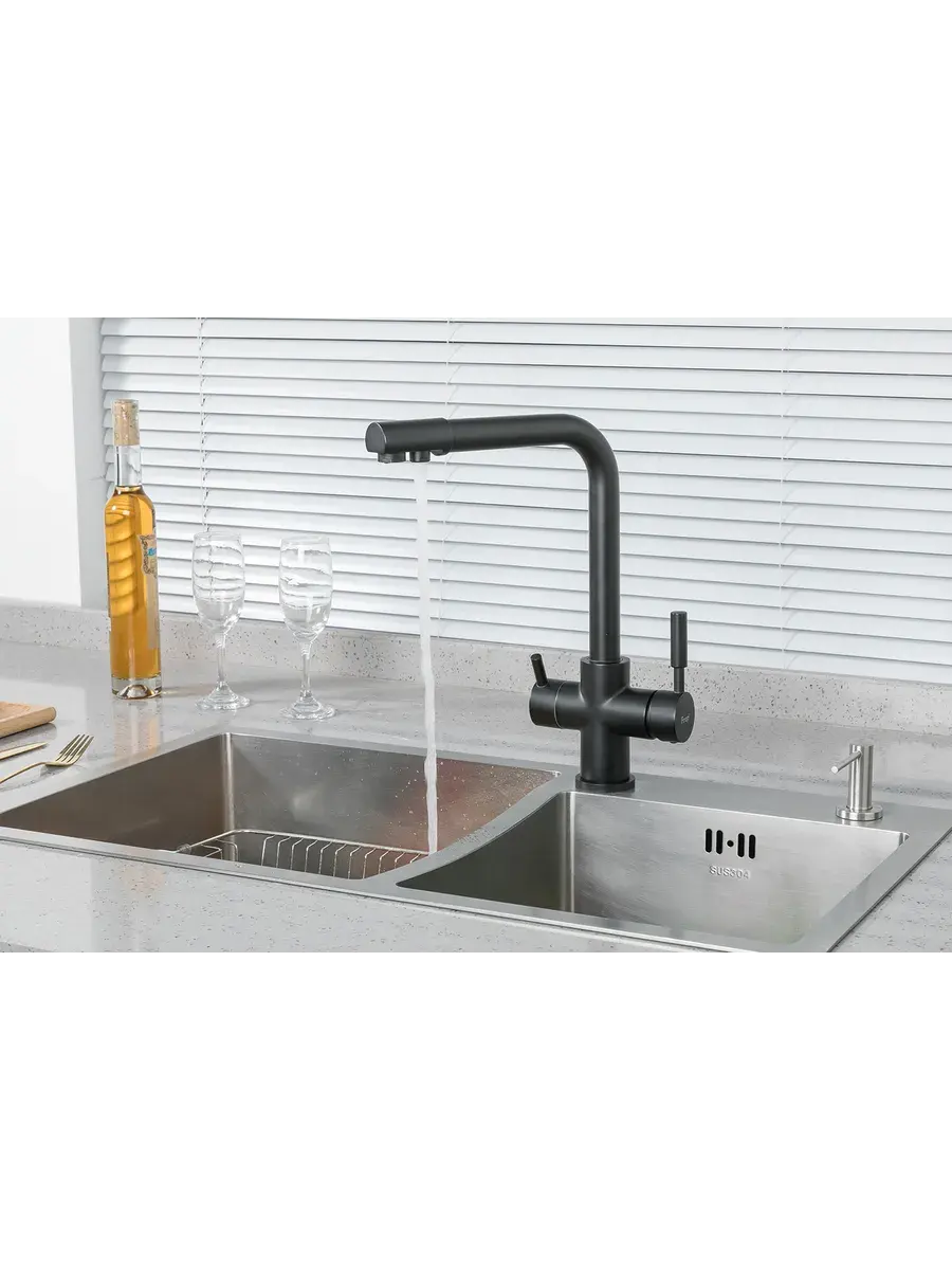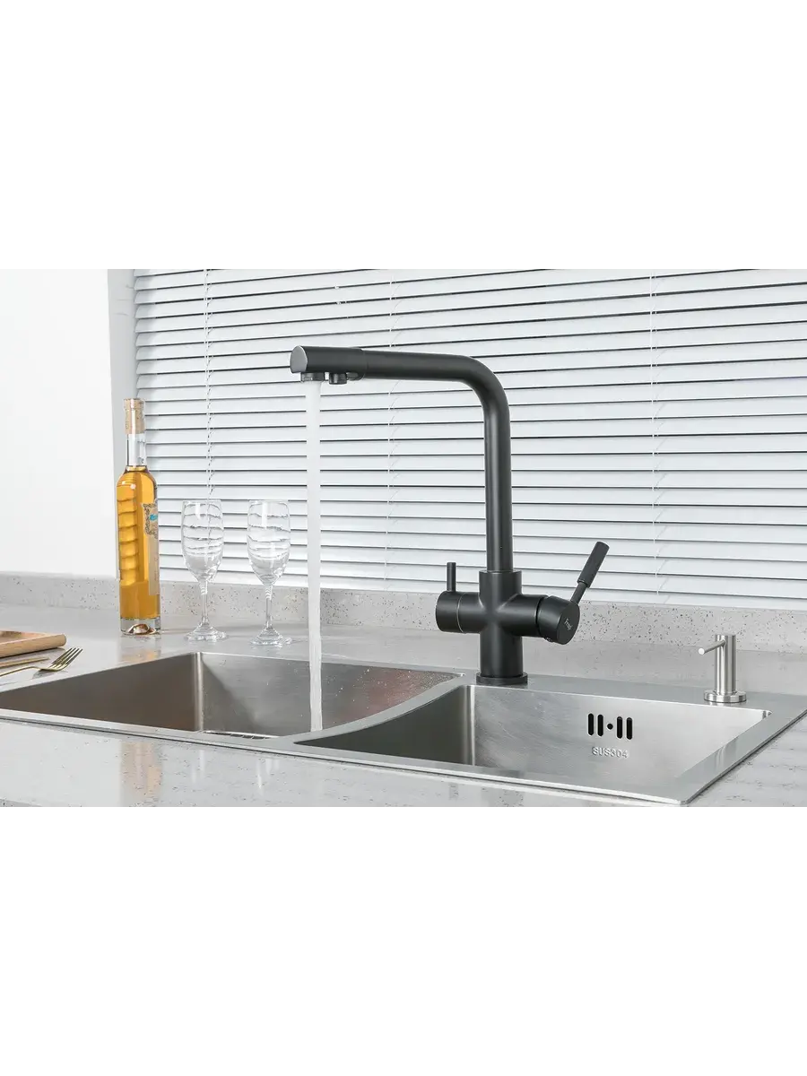 Если вы задумали ремонт на кухне, советуем обратить внимание на наш новый кухонный смеситель F4352-6 в черном цвете . Он разработан немецким брендом по новейшей технологии. Наш магазин - официальный дилер FRAP в России. Мы поставляем только оригинальную продукцию и даем 3 года гарантии на изделия. Frap представляет новый смеситель для кухни с фильтром, который станет незаменимой частью на вашей кухни. Этот смеситель сделан из латуни высокого качества, что обеспечивает прочность, надежность и долговечность устройства. Оснащен высоким универсальным изливом, который идеально подходит для моек кухонных и позволяет заполнять большие емкости, чтобы ускорить процесс приготовление пищи, облегчить мытье противней, кастрюль. Кроме того, кран оснащен изливом, который легко поворачивается на 360 градусов, что делает его более удобным в использовании. Имеет керамический картридж, что позволяет точно регулировать температуру и напор воды. Аэратор обеспечивает более мягкий и экономный поток воды, что помогает сэкономить воду и снизить счета за электричество. Имеет гибкий тип подводки, что позволяет упростить процесс установки. Он является идеальным выбором для тех, кто ищет качественный, удобный и надежный смеситель для своей кухни. Отлично сочетается с любым дизайном.