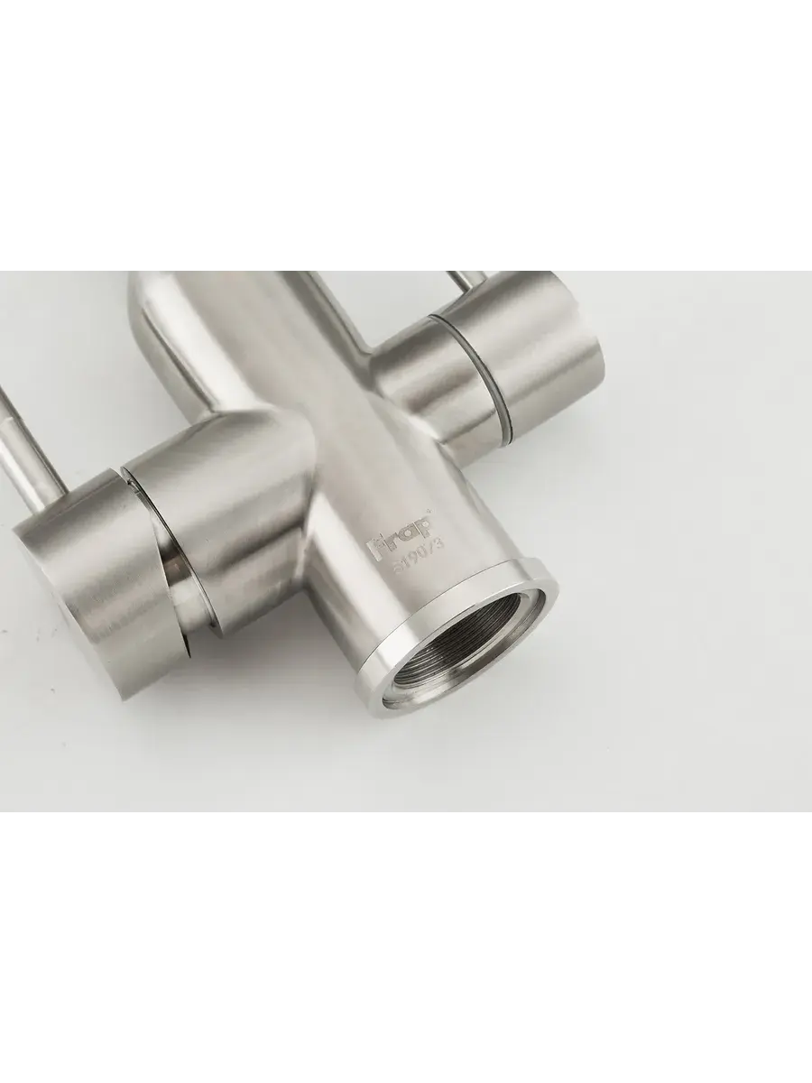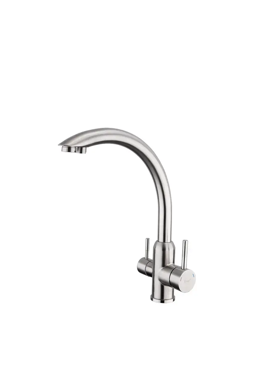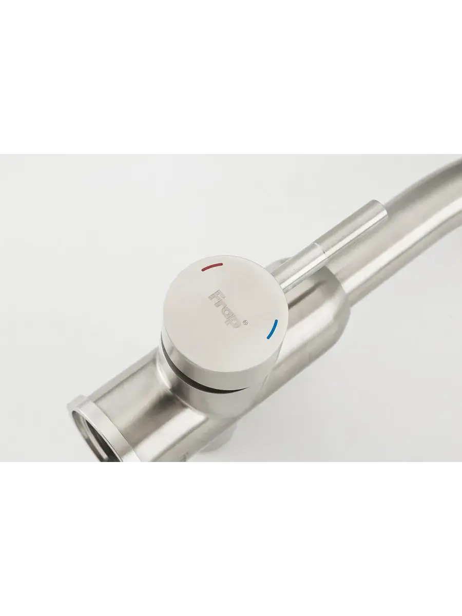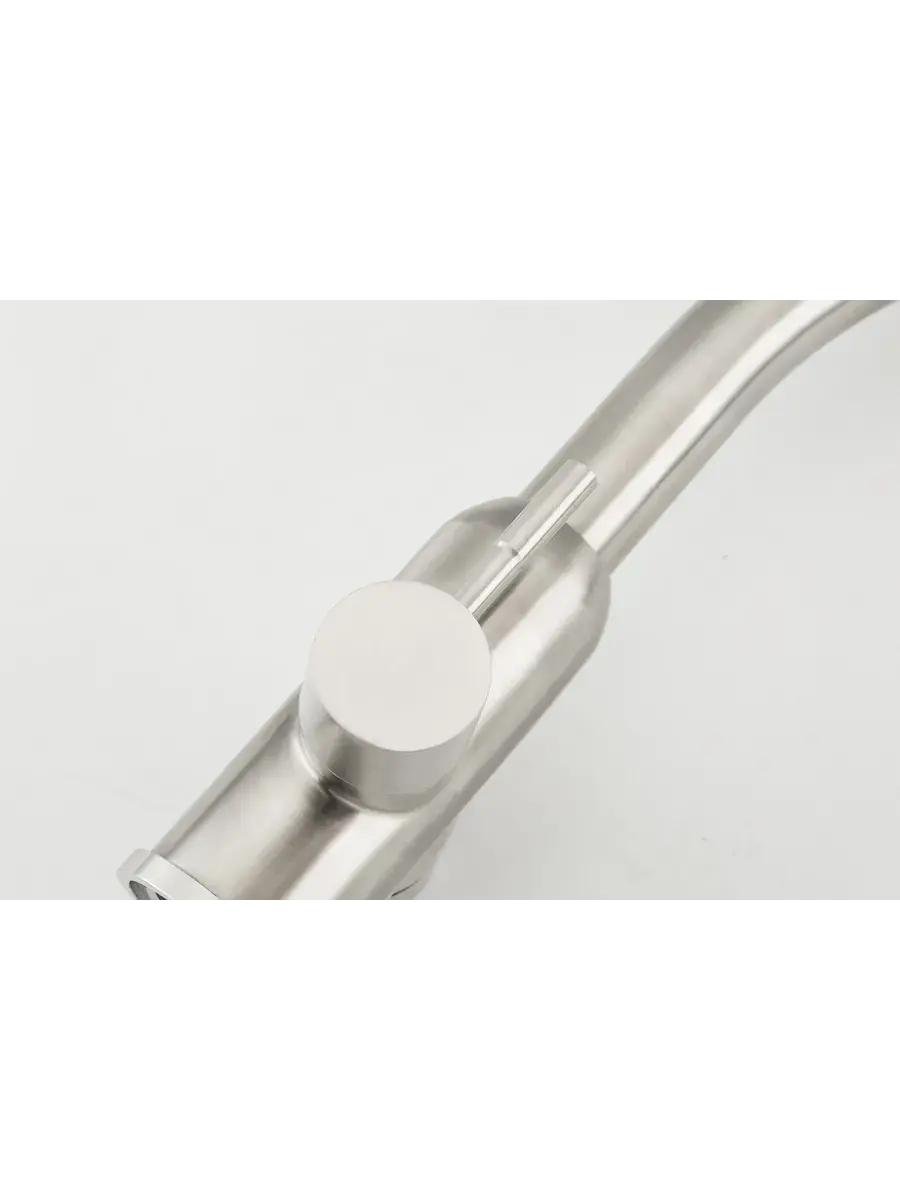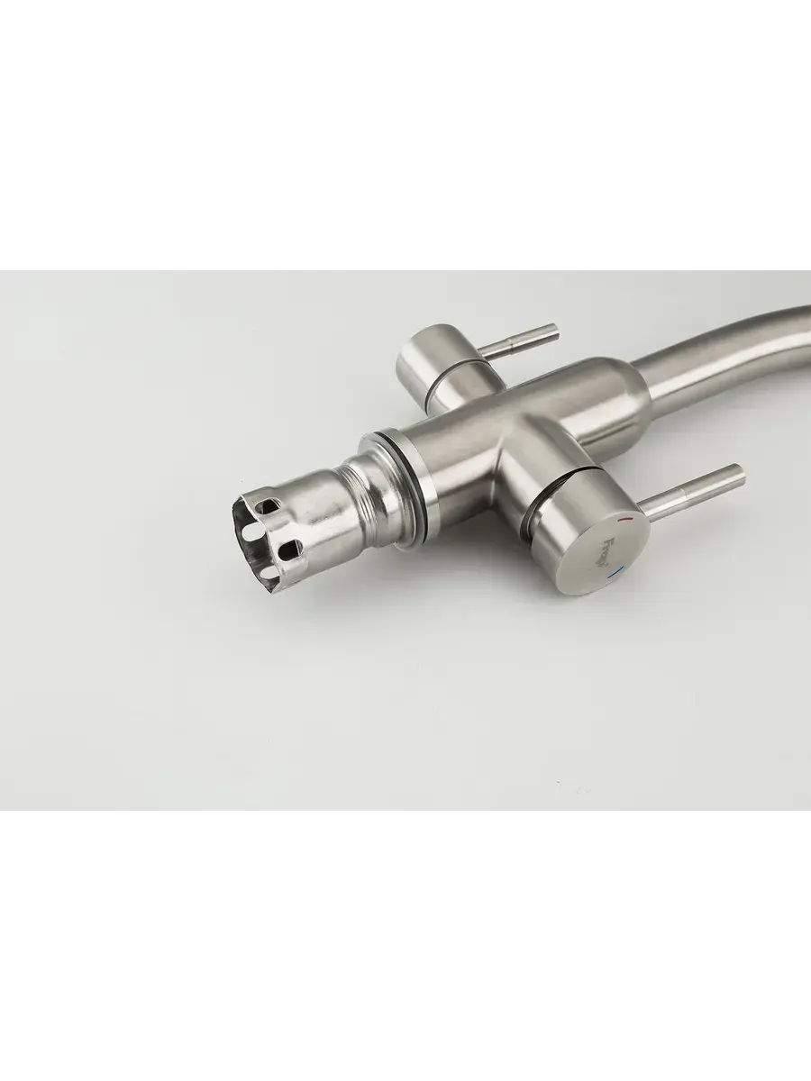 Смеситель для кухни с подключением к фильтру и выдвижным изливом FRAP F43899 в цвете хром станет стильным и функциональным дополнением к вашей кухне. Модель оснащена выдвижным изливом с поворотным механизмом, что обеспечивает удобство использования и максимальный радиус действия. Высота излива составляет 34 см, а длина - 20.4 см, что позволяет комфортно мыть даже габаритную посуду. Смеситель FRAP F4396-30 оборудован встроенным фильтром для чистой питьевой воды, а также аэратором для экономии воды. Двухрычажный механизм управления и керамический картридж гарантируют плавную регулировку температуры и напора воды.