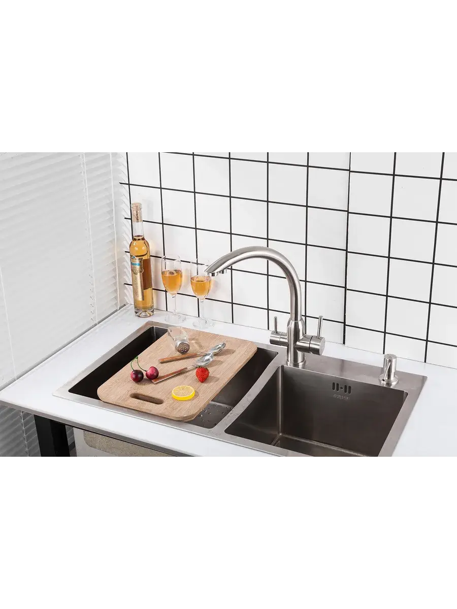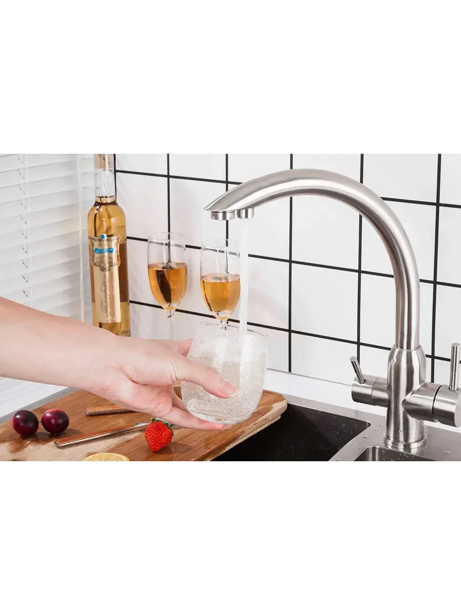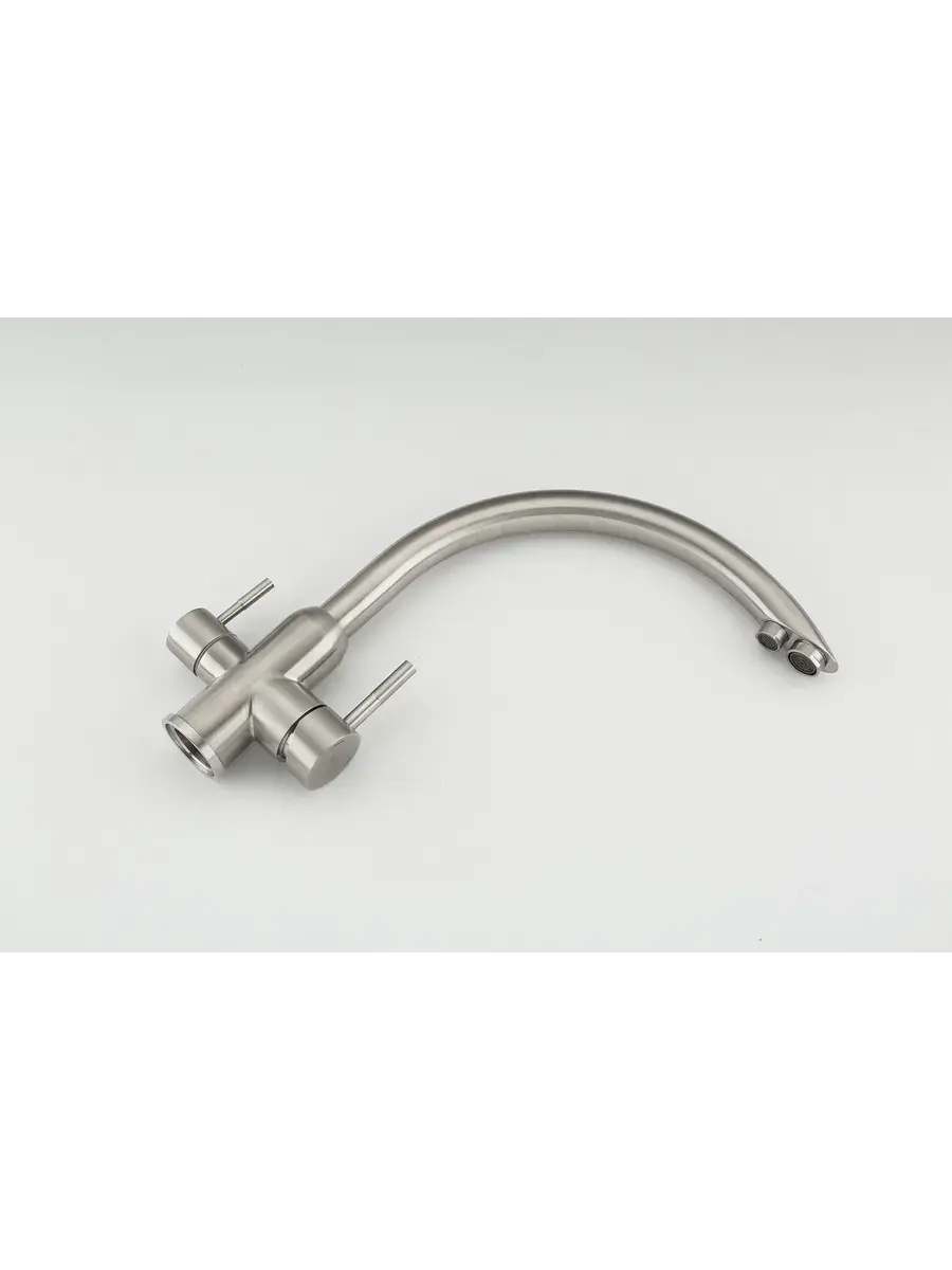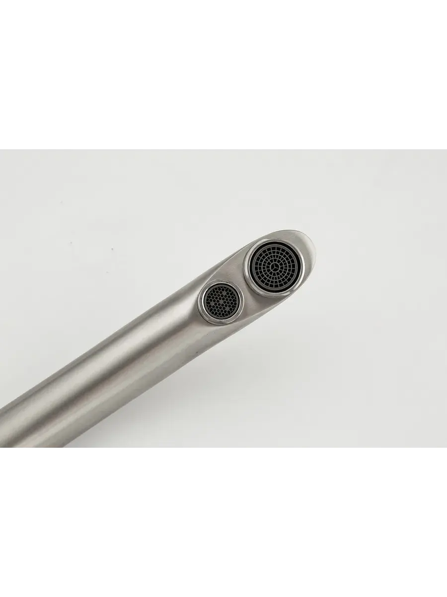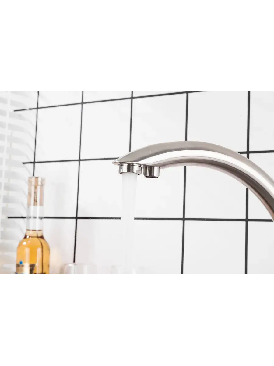 Смеситель для кухни с подключением к фильтру и выдвижным изливом FRAP F43899 в цвете хром станет стильным и функциональным дополнением к вашей кухне. Модель оснащена выдвижным изливом с поворотным механизмом, что обеспечивает удобство использования и максимальный радиус действия. Высота излива составляет 34 см, а длина - 20.4 см, что позволяет комфортно мыть даже габаритную посуду. Смеситель FRAP F4396-30 оборудован встроенным фильтром для чистой питьевой воды, а также аэратором для экономии воды. Двухрычажный механизм управления и керамический картридж гарантируют плавную регулировку температуры и напора воды.