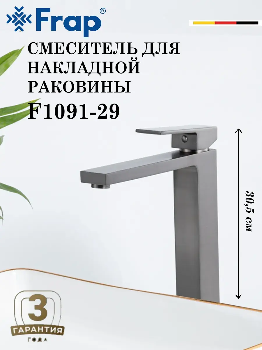 Смеситель высокий для накладной раковины FRAP F1091-29 - стильное и функциональное решение для вашей ванной комнаты. Однорычажный механизм управления позволяет легко регулировать температуру и напор воды, а керамический картридж гарантирует плавную работу и долговечность. Традиционный излив с аэратором обеспечивает комфортное использование, а длина излива в 19,2 см подходит для большинства раковин. Смеситель выполнен из латуни, что придает ему элегантный вид и устойчивость к коррозии. В комплект входит все необходимое для установки: смеситель, подводка, крепление и гарантийный талон.