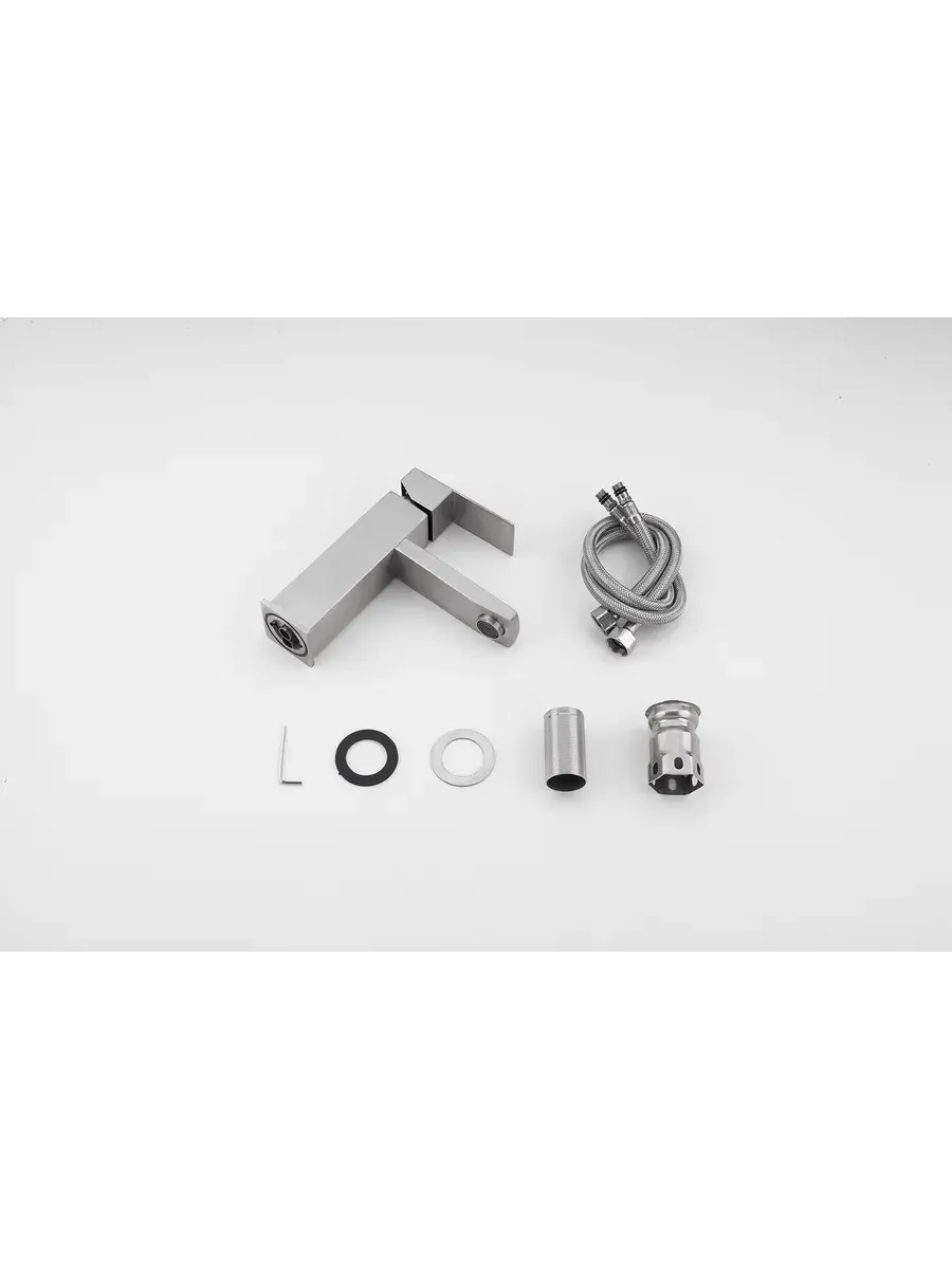 Смеситель для раковины FRAP F10802 - стильное и функциональное решение для вашей ванной комнаты. Однорычажный механизм управления позволяет легко регулировать температуру и напор воды, а керамический картридж гарантирует плавную работу и долговечность. Традиционный излив с аэратором обеспечивает комфортное использование, а длина излива в 11,4 см подходит для большинства раковин. Смеситель выполнен из нержавеющей стали SUS304 и покрыт хромом, что придает ему элегантный вид и устойчивость к коррозии. В комплект входит все необходимое для установки: смеситель, подводка, крепление и гарантийный талон.