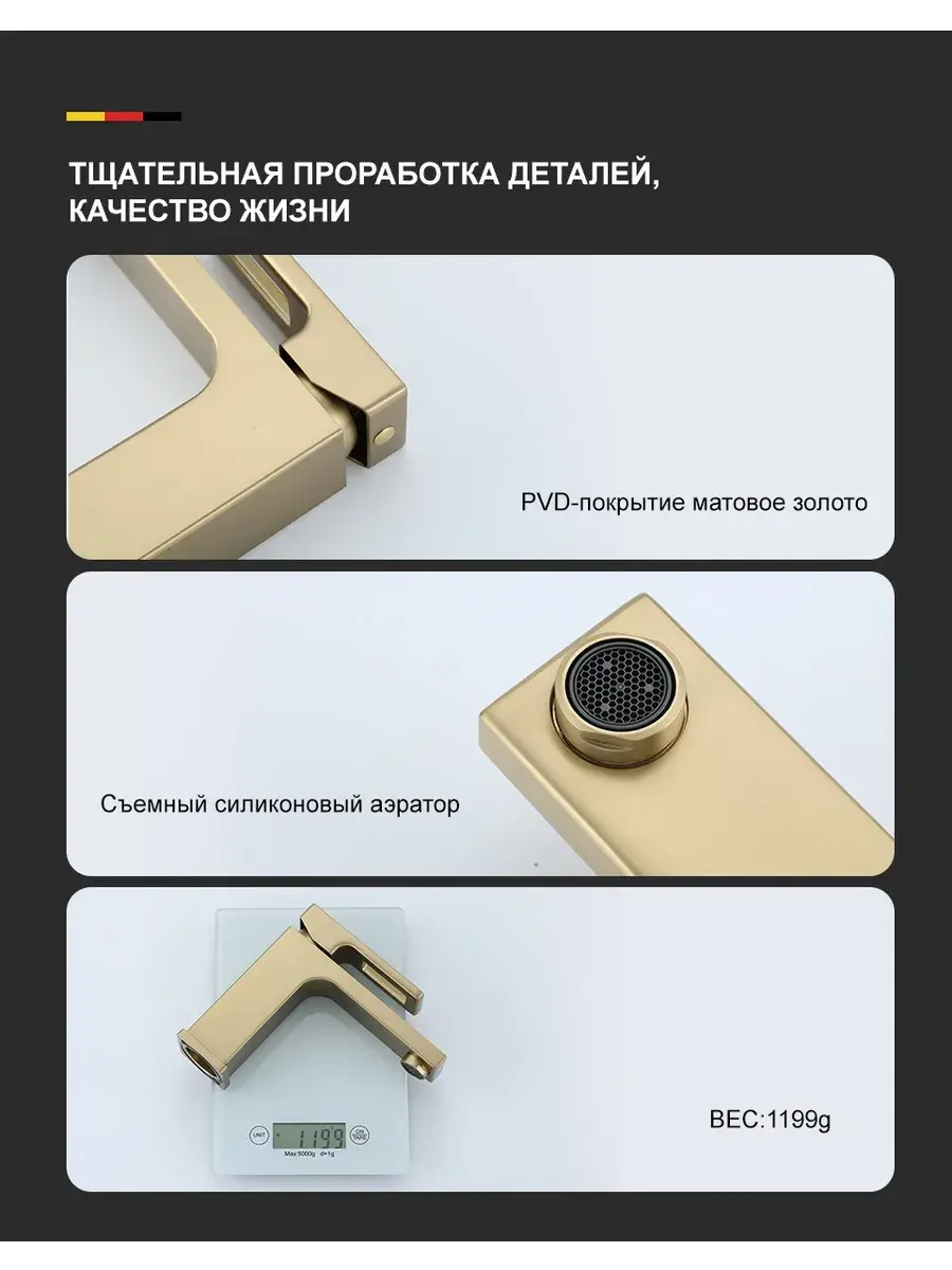 1) Цвет: матовое золото