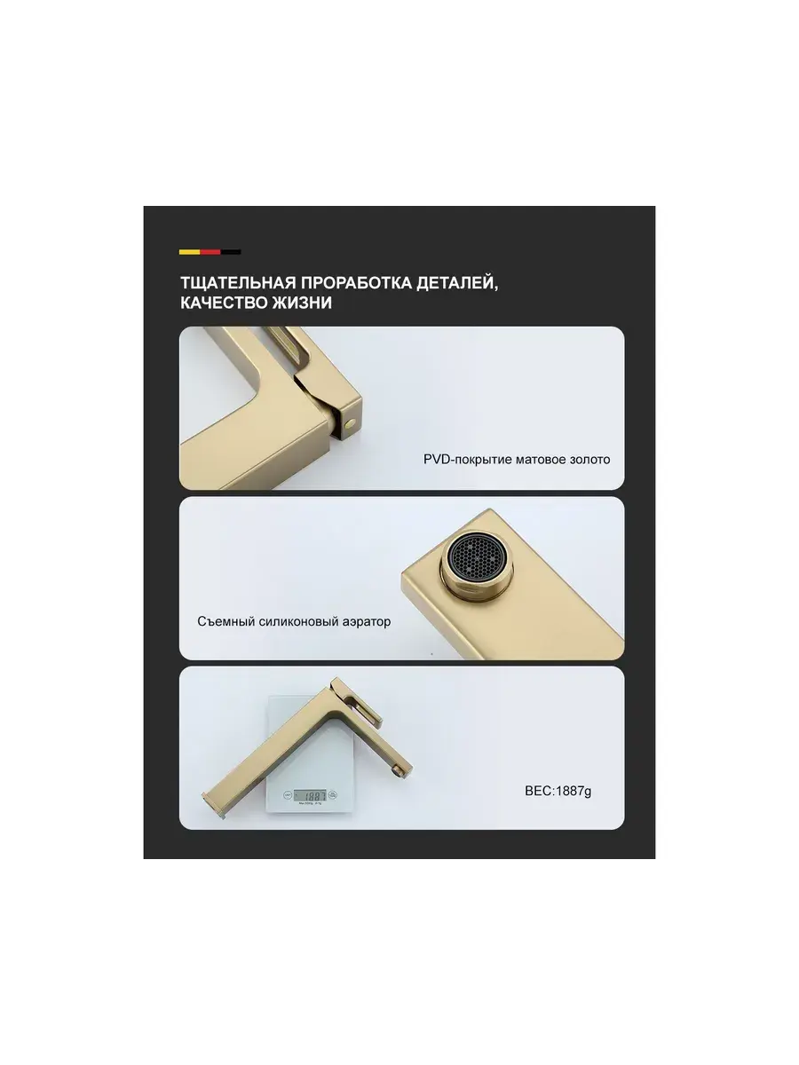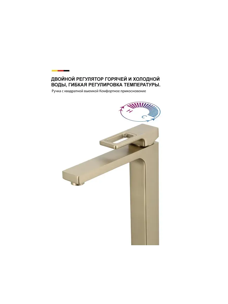 -Смеситель для раковины Gappo G1017-32 оснащен одной рукоятью чтобы регулировать напор. Аэратор гарантирует равномерный поток воды, с помощью того, что металлическая сеточка будет рассеивать напор, вода становится мягче. Также сеточка поможет отфильтровать примеси и позволит сэкономить более 5 кубометров воды в течение года. Основной материал в приборе - латунь, проверенный материал, обеспечивающий прекрасное нанесение покрытия матовое золото. Модель обычной округлой формы. Данный прибор имеет надежный стационарный излив. В комплекте идет все, что необходимо для монтажа и эксплуатации.