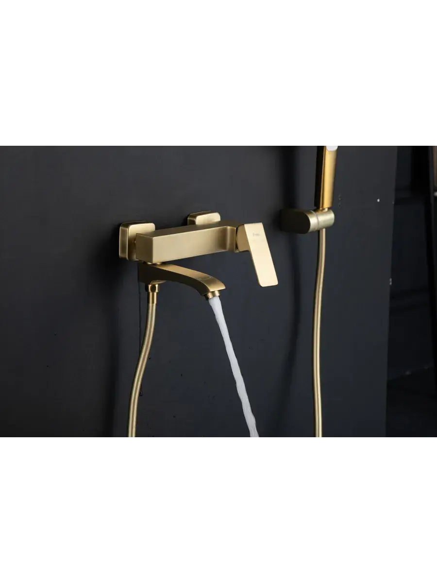 Смеситель для ванны с душем F3276-3 бренда Frap относится к продукции класса «люкс». Изготовлен из высококачественной латуни, что гарантирует его долговечность и надёжность, а также оснащён аэратором, который обеспечивает равномерный поток. Корпус оснащен испанским картриджем Sedal, который плавно открывает воду. Переключение с излива на ручную лейку производится его поворотом. Душевая лейка имеет 3 режима, которые меняются при помощи нажатия кнопки. Кран для ванны с коротким изливом станет стильной изюминкой Вашей ванной комнаты. Производитель даёт гарантию 3 года на корпус смесителя и 1 год на покрытие «матовое золото».