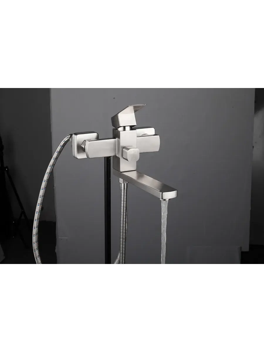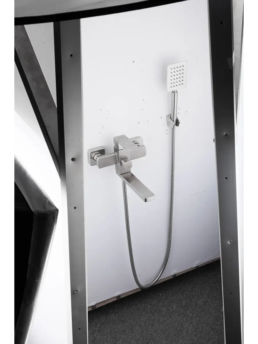 Смеситель для ванны с душем F32802 бренда Frap относится к продукции класса «люкс». Изготовлен из высококачественной нержавеющей стали, что гарантирует его долговечность и надёжность, а также оснащён аэратором, который обеспечивает равномерный поток. Корпус оснащен испанским картриджем Sedal, который плавно открывает воду. Переключение с излива на ручную лейку производится его поворотом. Душевая лейка имеет 3 режима, которые меняются при помощи нажатия кнопки. Кран для ванны с коротким изливом станет стильной изюминкой Вашей ванной комнаты. Производитель даёт гарантию 3 года на корпус смесителя и 1 год на покрытие «сатин».