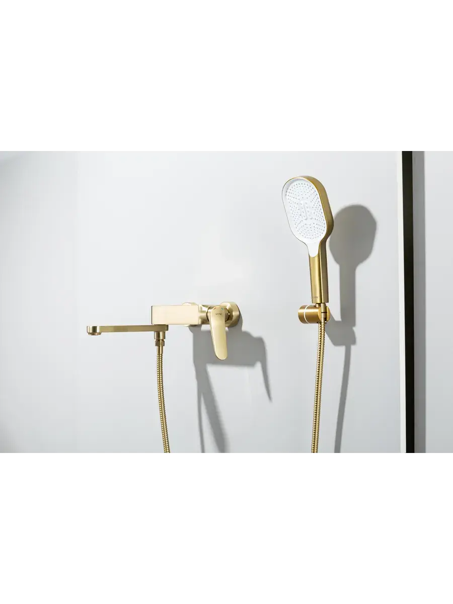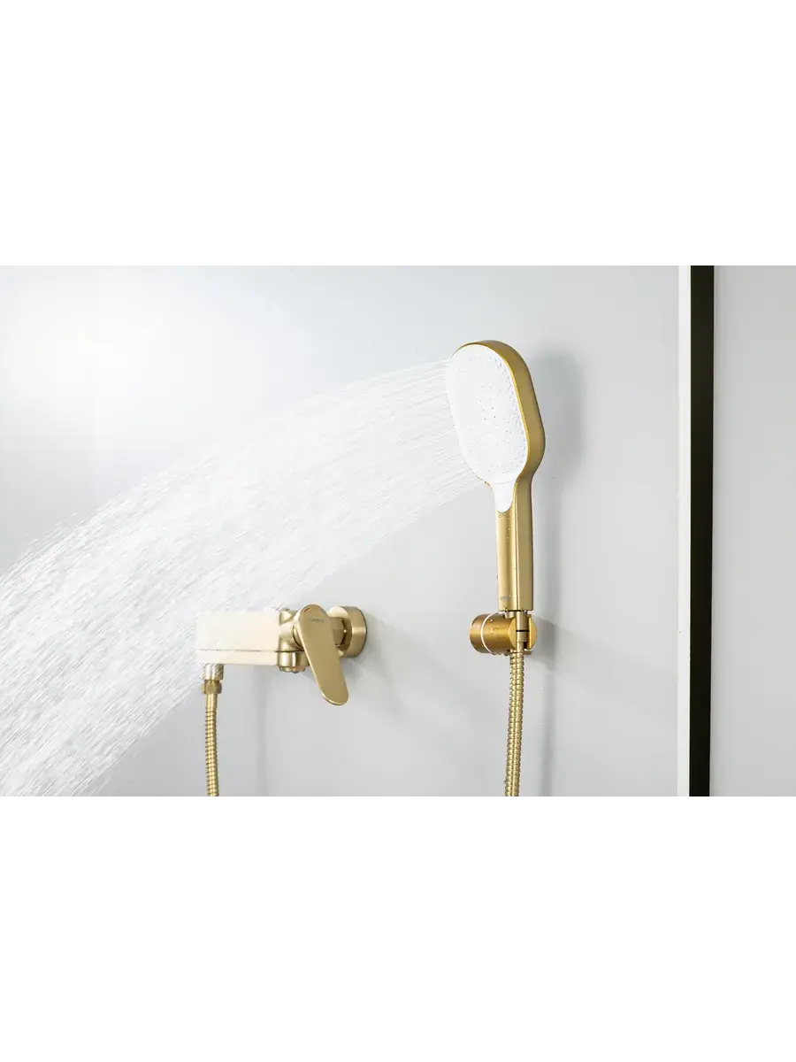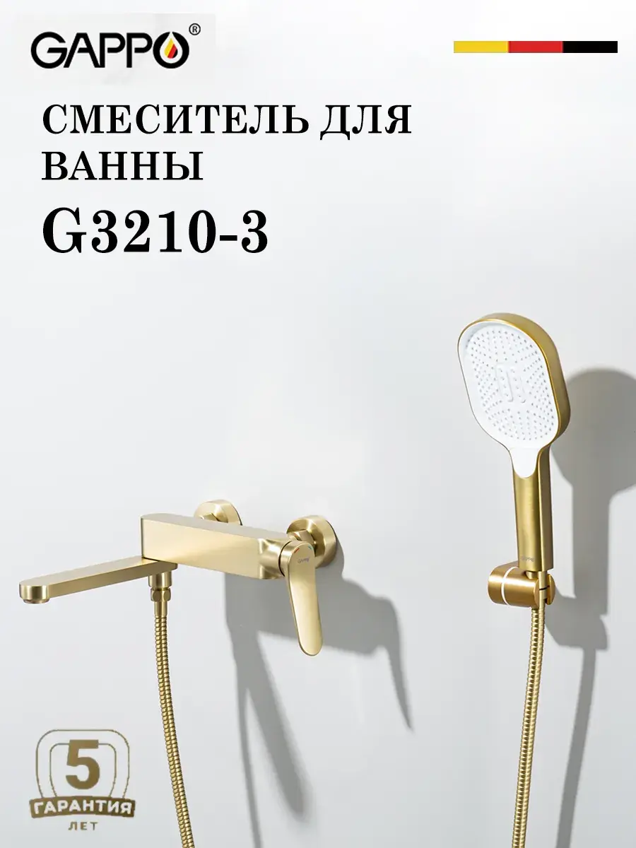 Смеситель для ванны с душем G3210-3 бренда Gappo относится к продукции класса «люкс». Изготовлен из высококачественной латуни, что гарантирует его долговечность и надёжность, а также оснащён аэратором, который обеспечивает равномерный поток. Корпус оснащен испанским картриджем Sedal, который плавно открывает воду. Переключение с излива на ручную лейку производится его поворотом. Душевая лейка имеет 3 режима, которые меняются при помощи нажатия кнопки. Кран для ванны с коротким изливом станет стильной изюминкой Вашей ванной комнаты. Производитель даёт гарантию 5 лет на корпус смесителя и 2 года на покрытие «матовое золото».