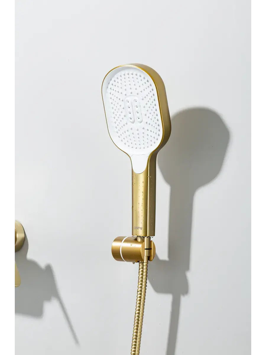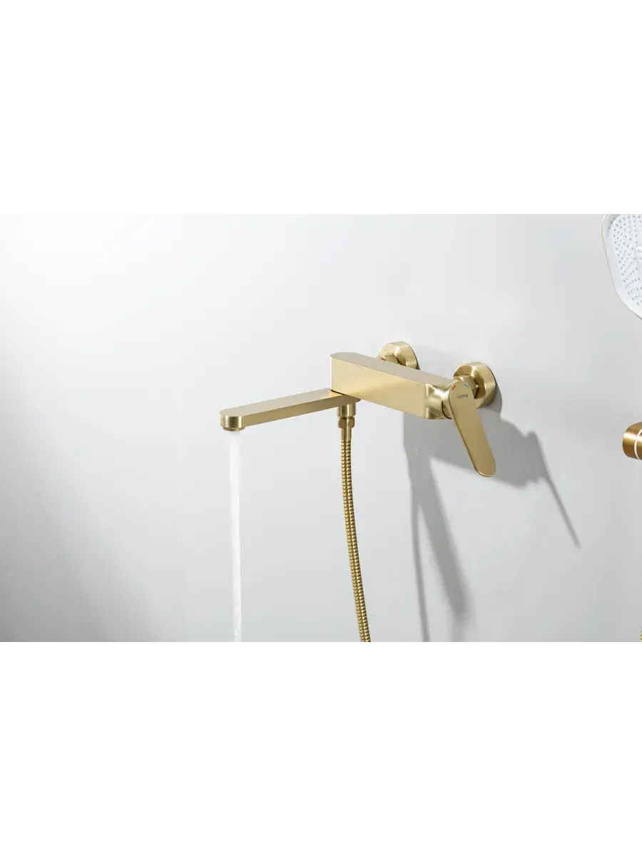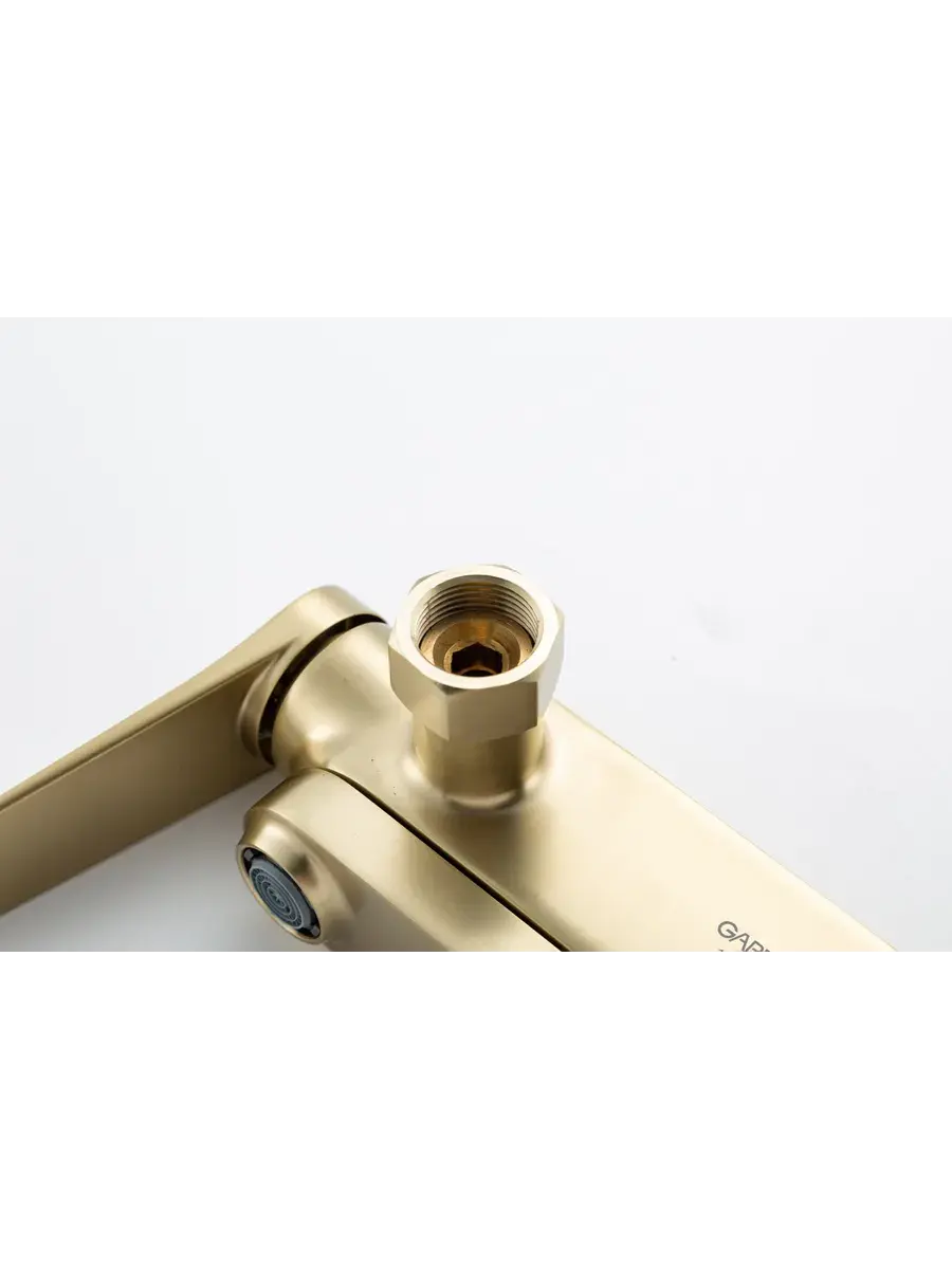 Смеситель для ванны с душем G3210-3 бренда Gappo относится к продукции класса «люкс». Изготовлен из высококачественной латуни, что гарантирует его долговечность и надёжность, а также оснащён аэратором, который обеспечивает равномерный поток. Корпус оснащен испанским картриджем Sedal, который плавно открывает воду. Переключение с излива на ручную лейку производится его поворотом. Душевая лейка имеет 3 режима, которые меняются при помощи нажатия кнопки. Кран для ванны с коротким изливом станет стильной изюминкой Вашей ванной комнаты. Производитель даёт гарантию 5 лет на корпус смесителя и 2 года на покрытие «матовое золото».