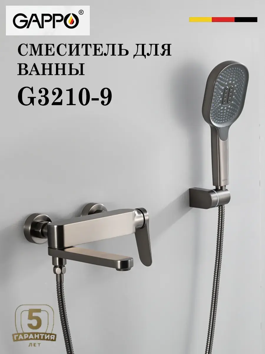 Смеситель для ванны с душем G3210-9 бренда Gappo относится к продукции класса «люкс». Изготовлен из высококачественной латуни, что гарантирует его долговечность и надёжность, а также оснащён аэратором, который обеспечивает равномерный поток. Корпус оснащен испанским картриджем Sedal, который плавно открывает воду. Переключение с излива на ручную лейку производится его поворотом. Душевая лейка имеет 3 режима, которые меняются при помощи нажатия кнопки. Кран для ванны с коротким изливом станет стильной изюминкой Вашей ванной комнаты. Производитель даёт гарантию 5 лет на корпус смесителя и 2 года на покрытие «оружейная сталь».